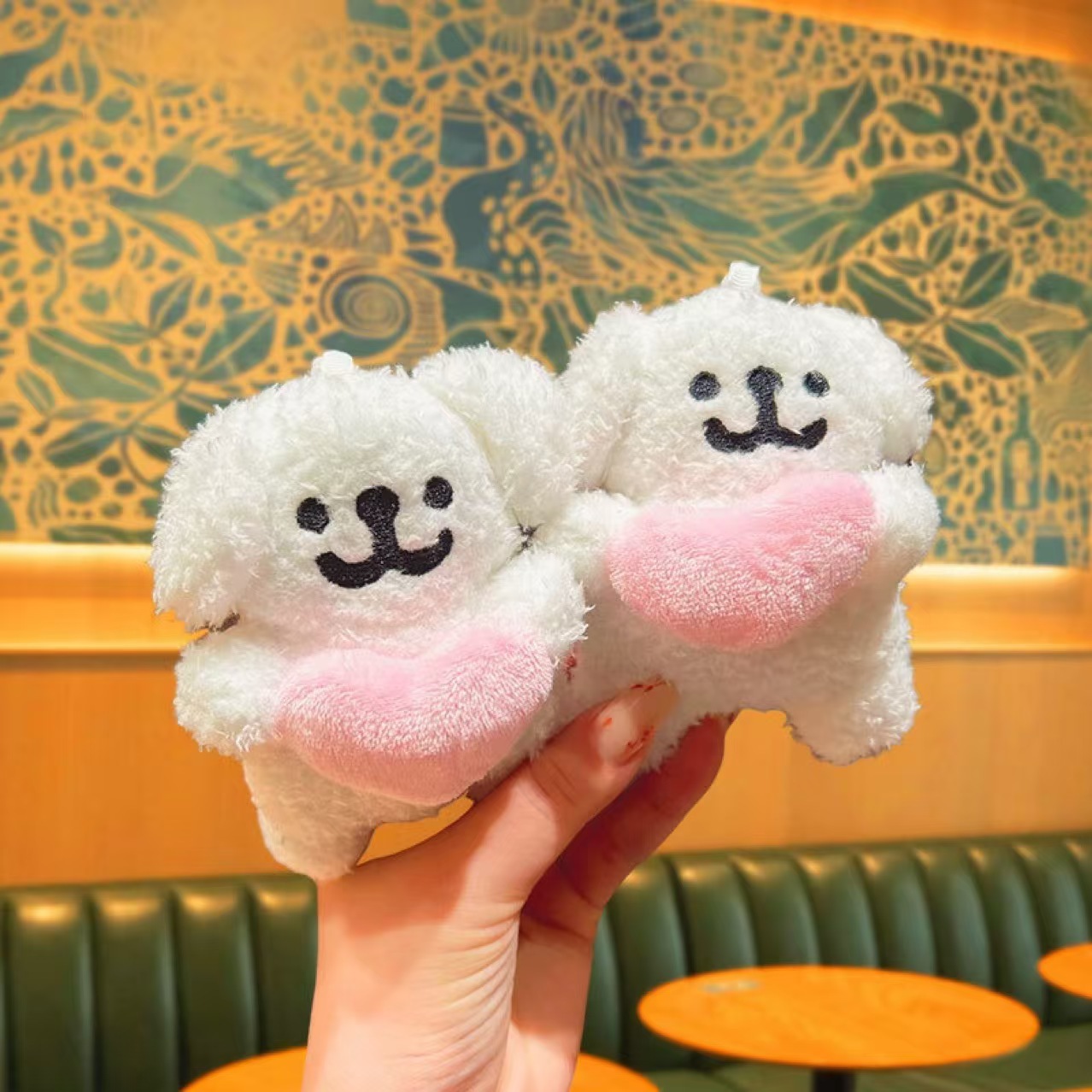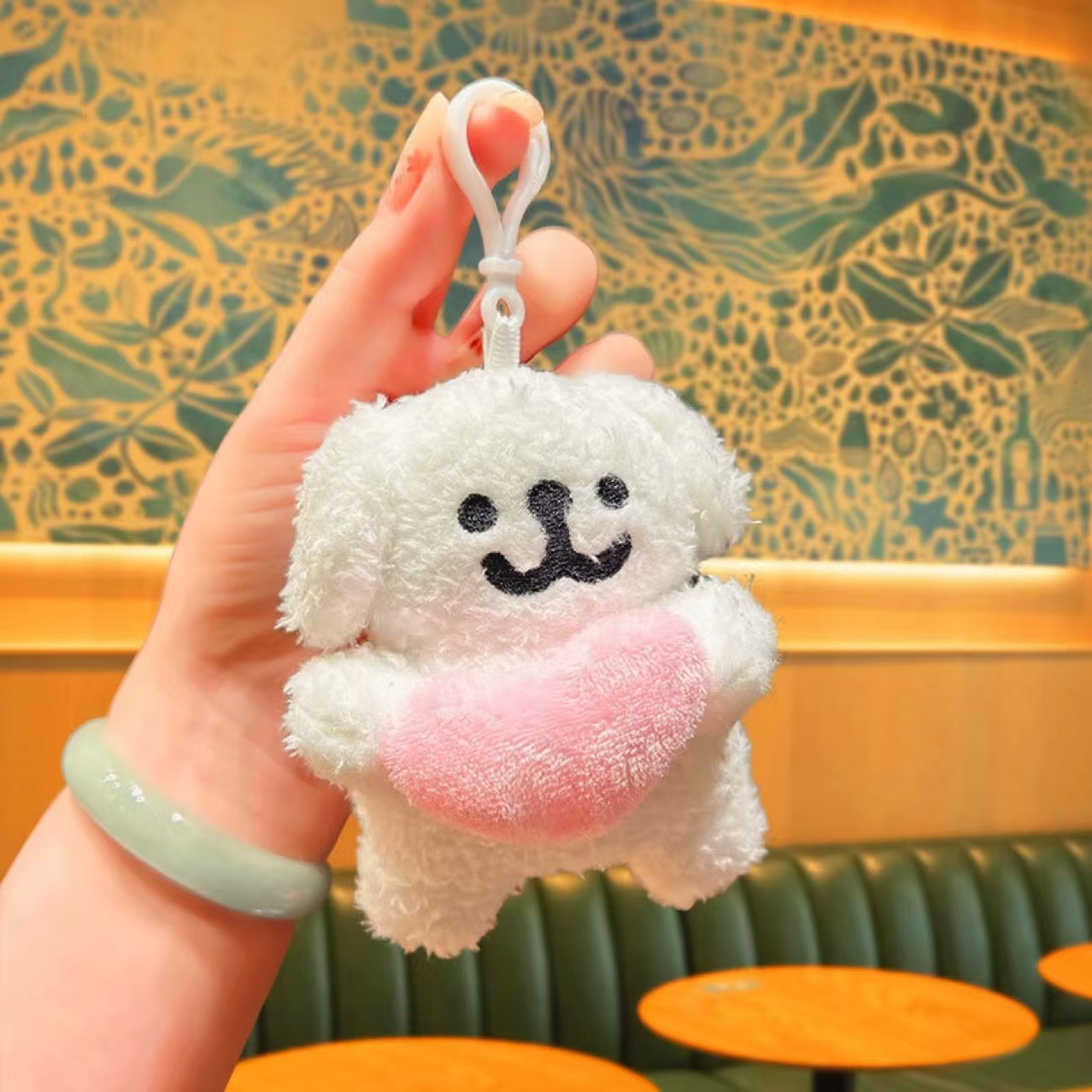 抱心白色线条小狗挂饰钥匙扣公仔娃娃饰品批发配件玩偶钥匙链挂件 English | 投诉