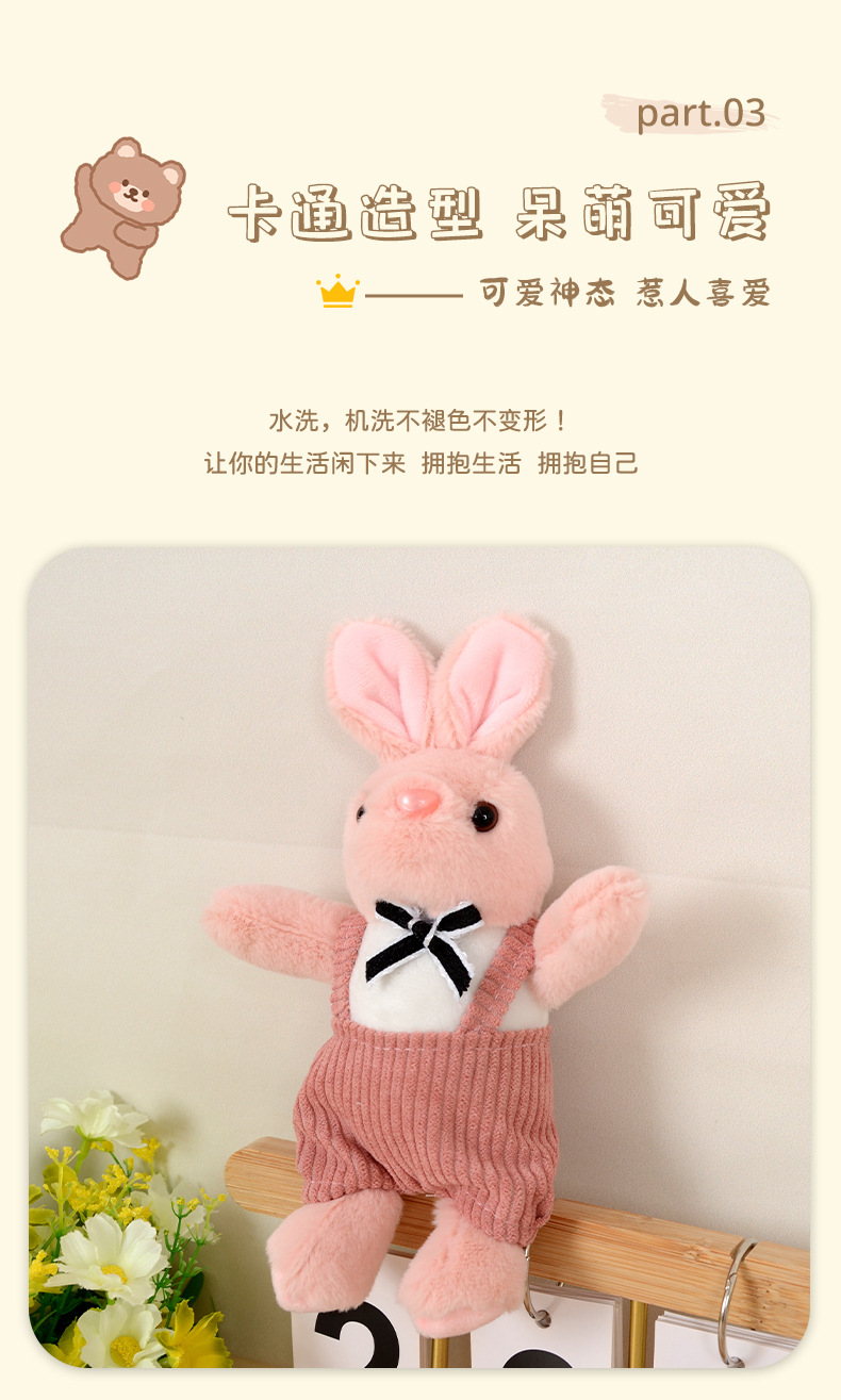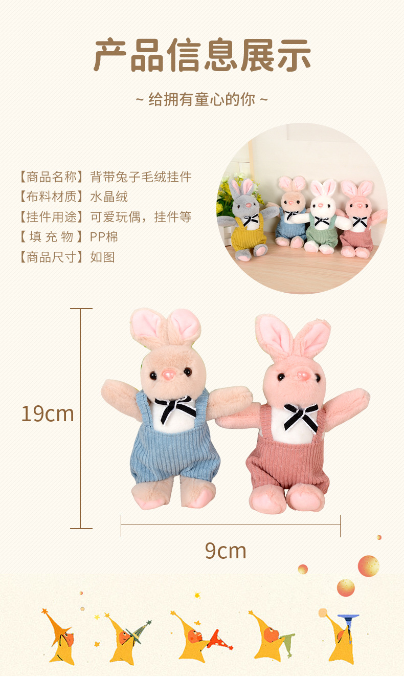 背带兔子毛绒公仔钥匙扣挂件个性卡通玩偶娃娃机公仔可爱书包挂件 English | 投诉