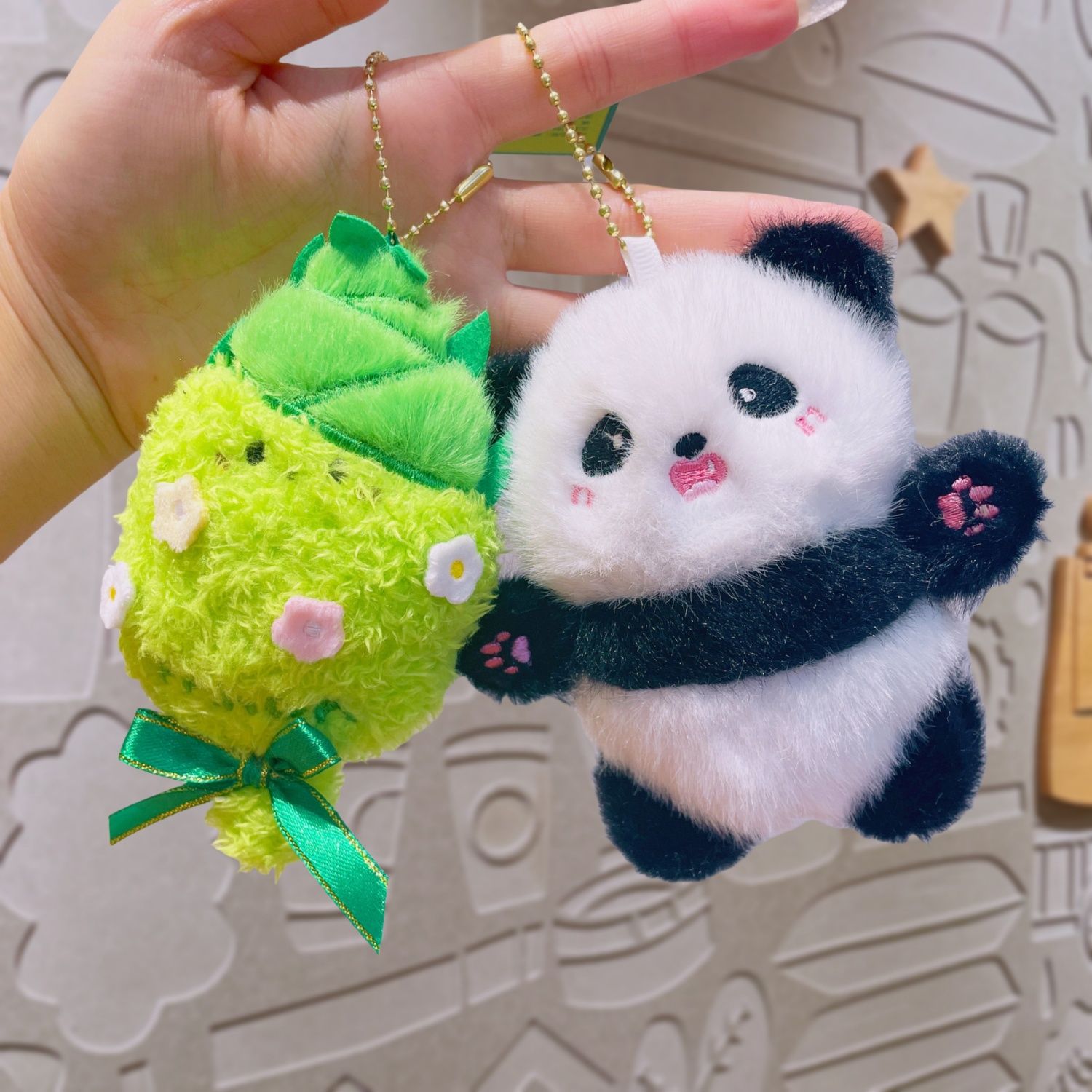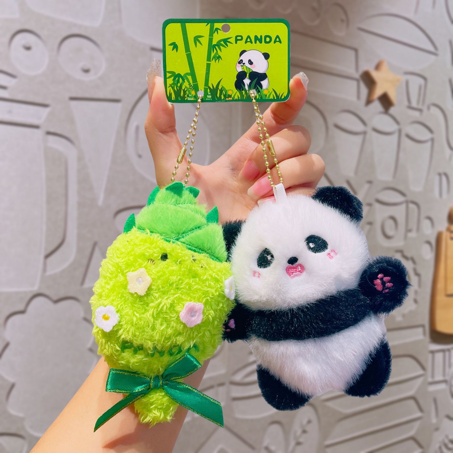 对对熊猫文创小礼品卡通毛绒创意钥匙扣网红精致情侣礼物竹笋挂件 English | 投诉