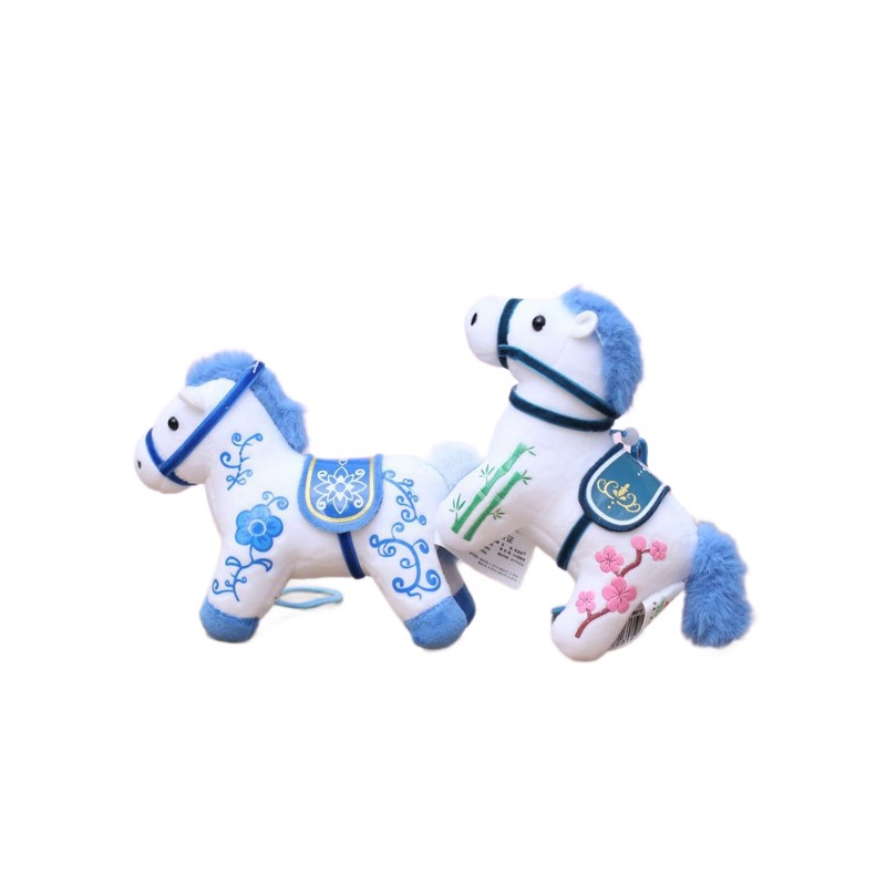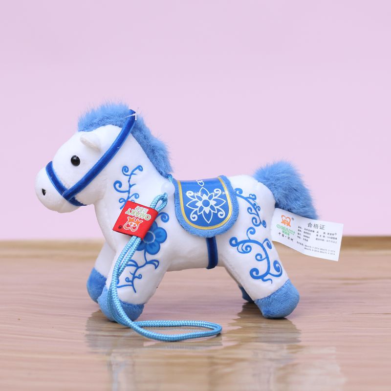 网红青花小马挂件可爱毛绒玩具公仔包包挂饰玩偶钥匙扣马年吉祥物 English | 投诉