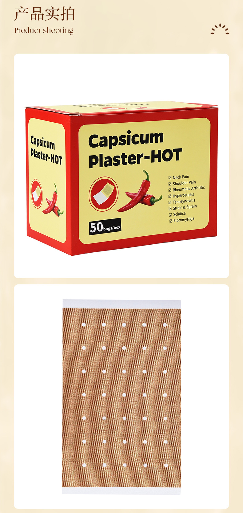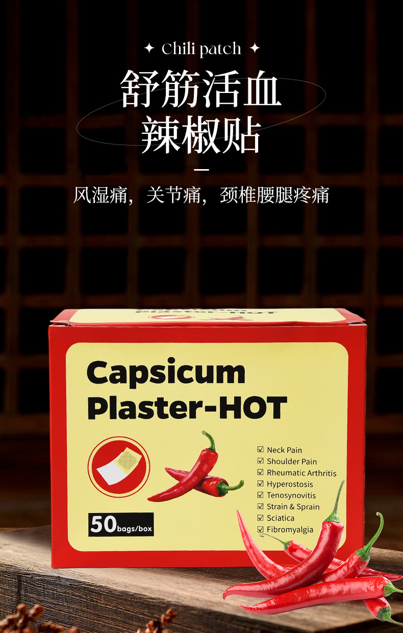 跨境亚马逊厂家直供颈椎腰椎膏药贴打孔弹力布辣椒贴现货批发