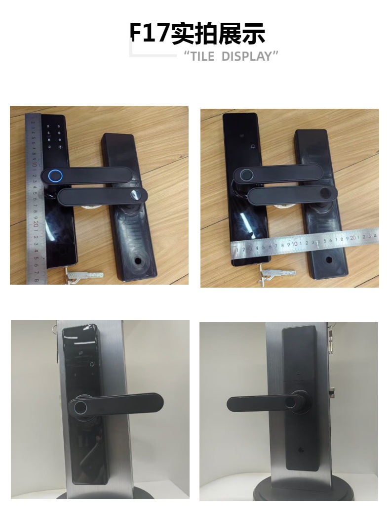 F17和F17-1都是木门指纹锁,功能一样,外观稍有不同。下面这款是F17木门指纹锁