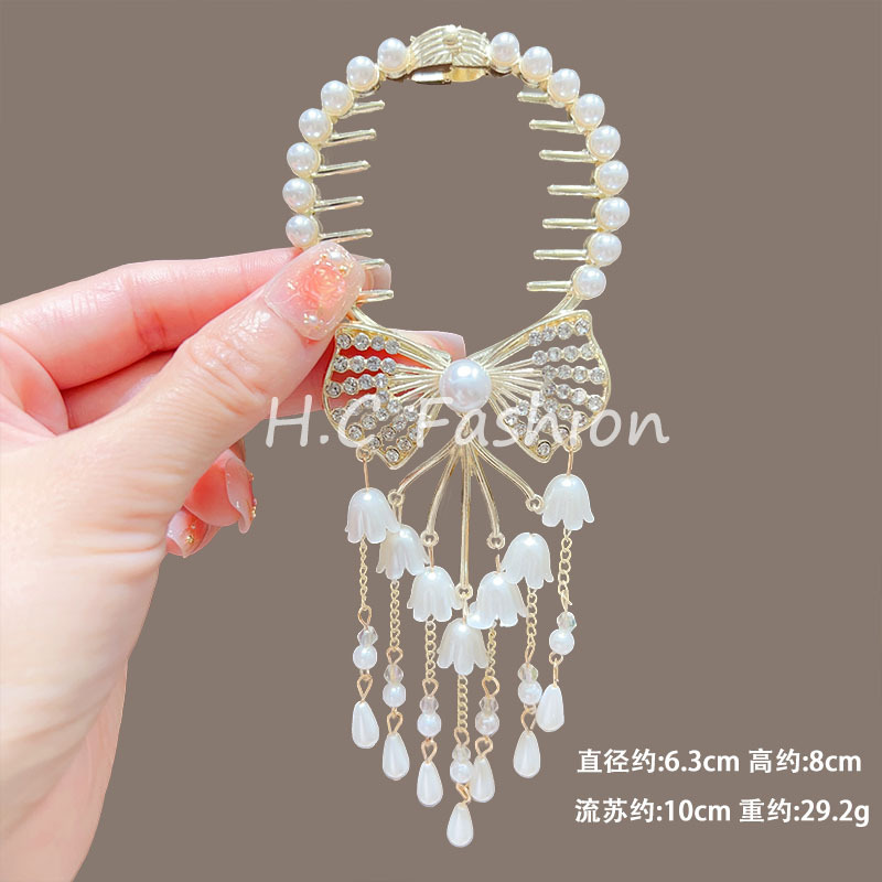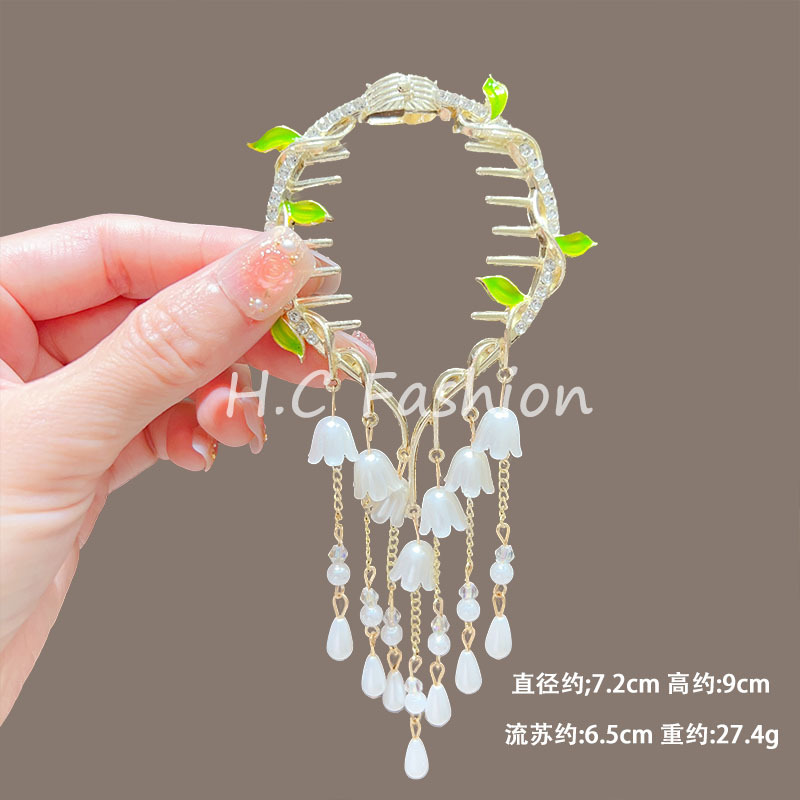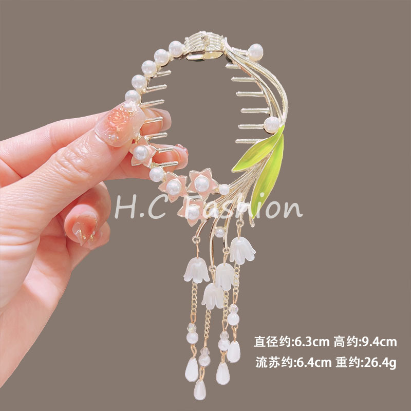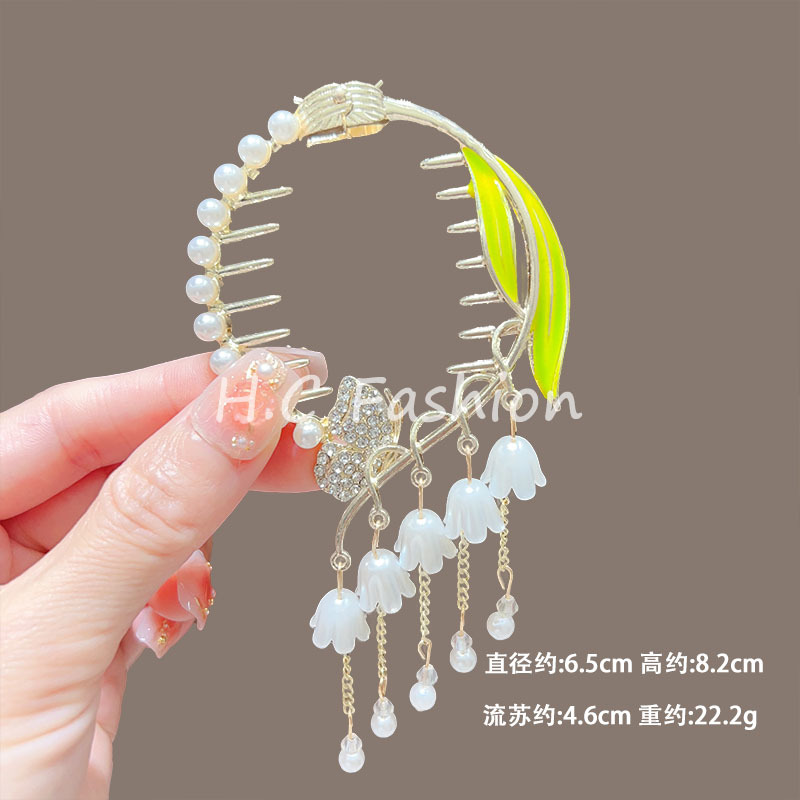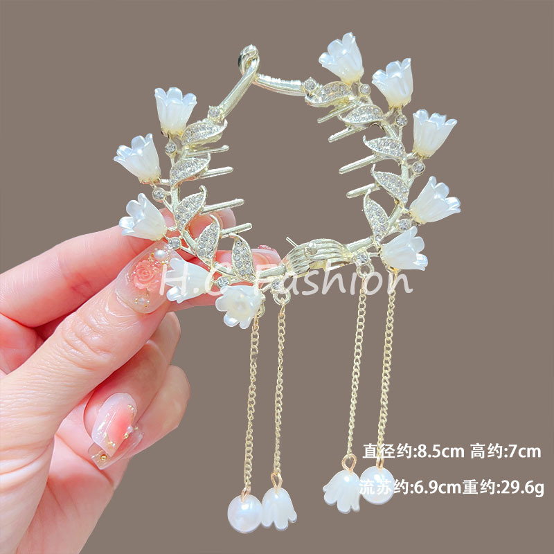 新款古风气质铃兰花流苏发夹丸子头固定神器高级感盘发夹子丸子扣