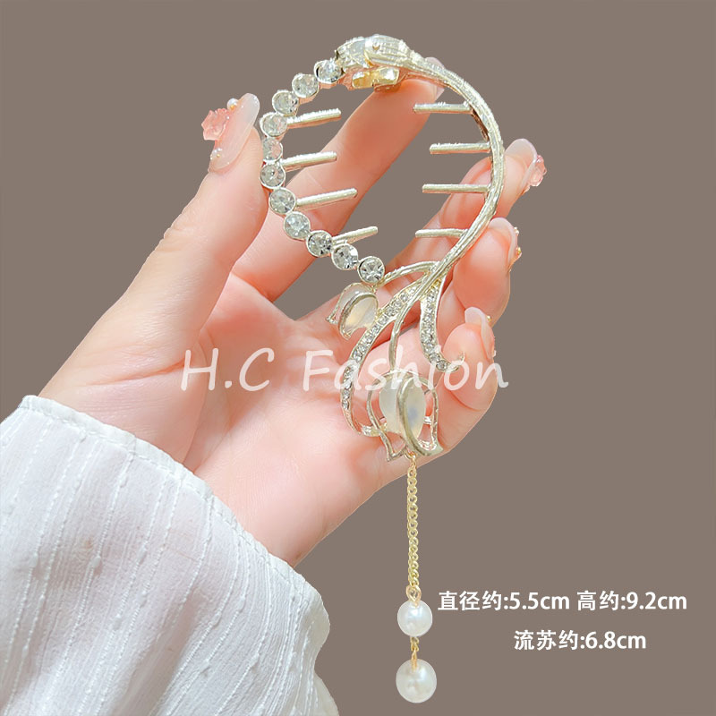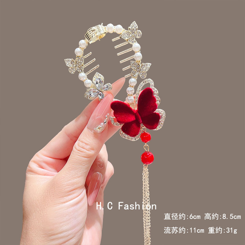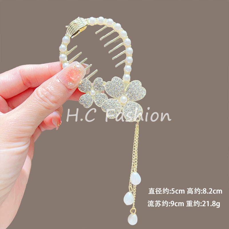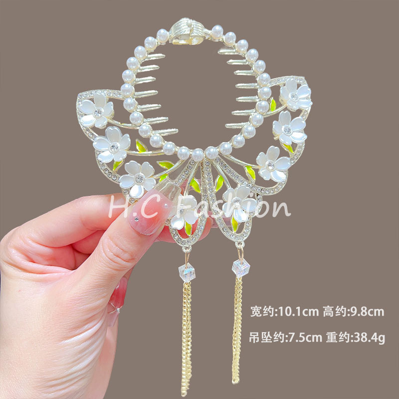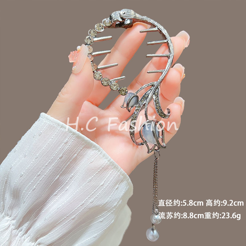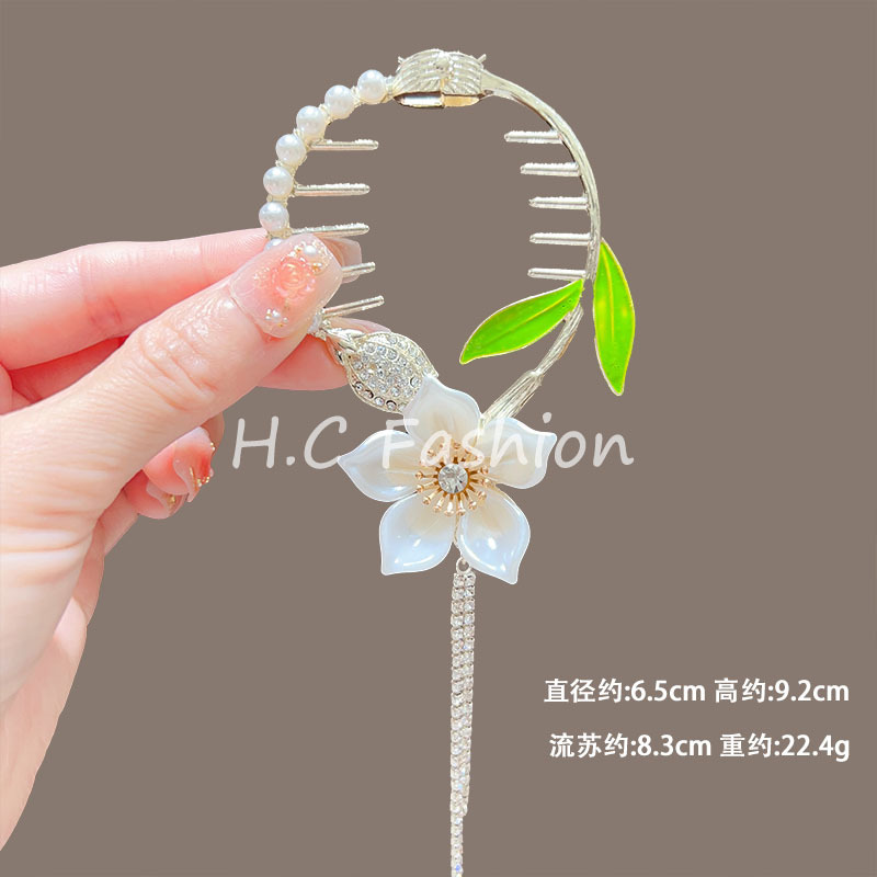 新款古风气质铃兰花流苏发夹丸子头固定神器高级感盘发夹子丸子扣