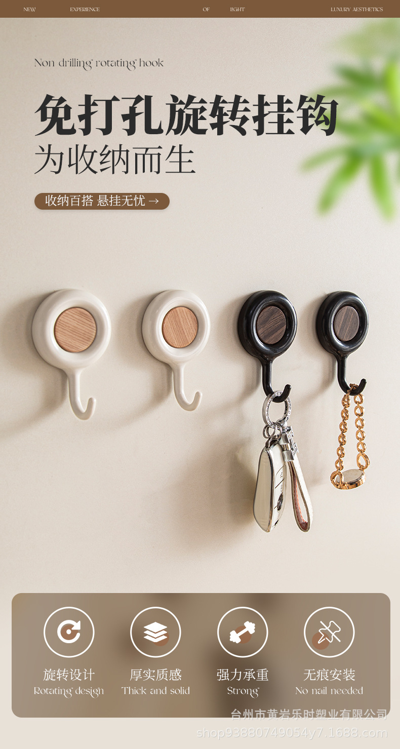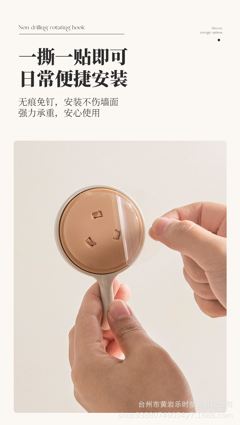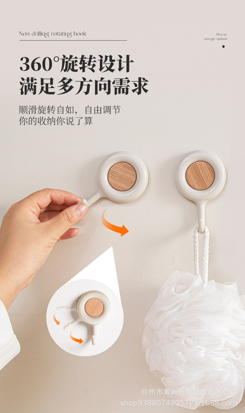 G192旋转挂钩免打孔壁挂强力粘胶浴室厨房顶柜免胶粘门后钥匙挂钩 English | 投诉