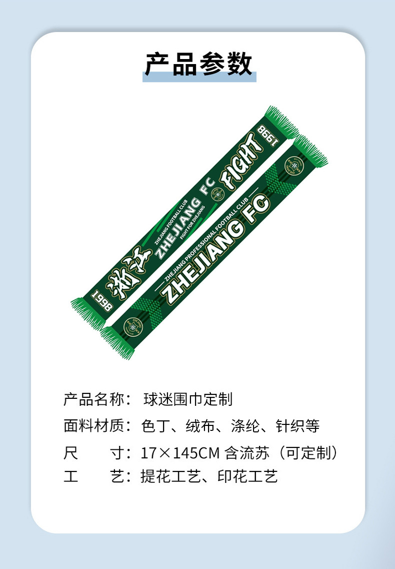 OEM定制浙江队围巾2025年夏季款涤纶布印花围巾浙江队球迷围巾 投诉