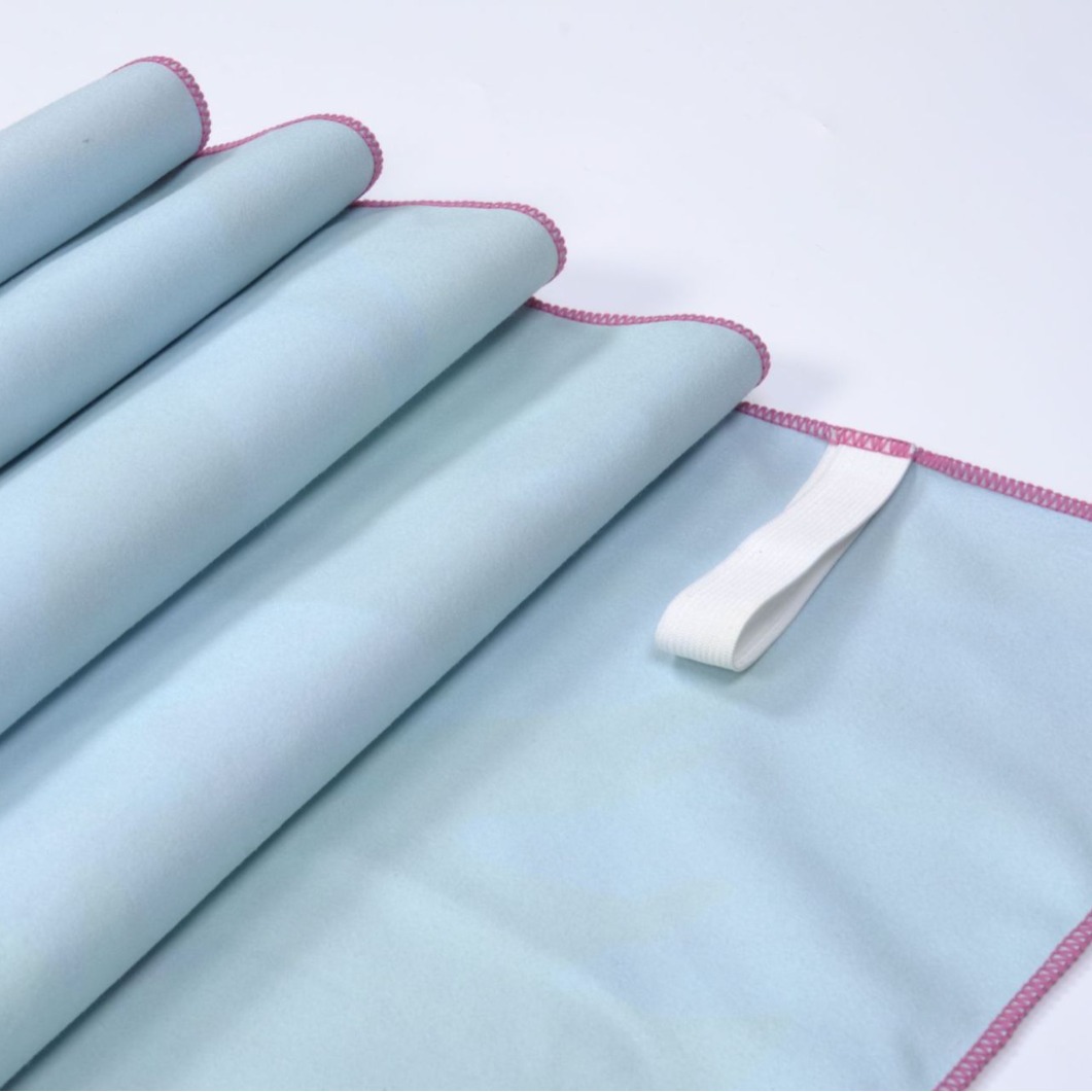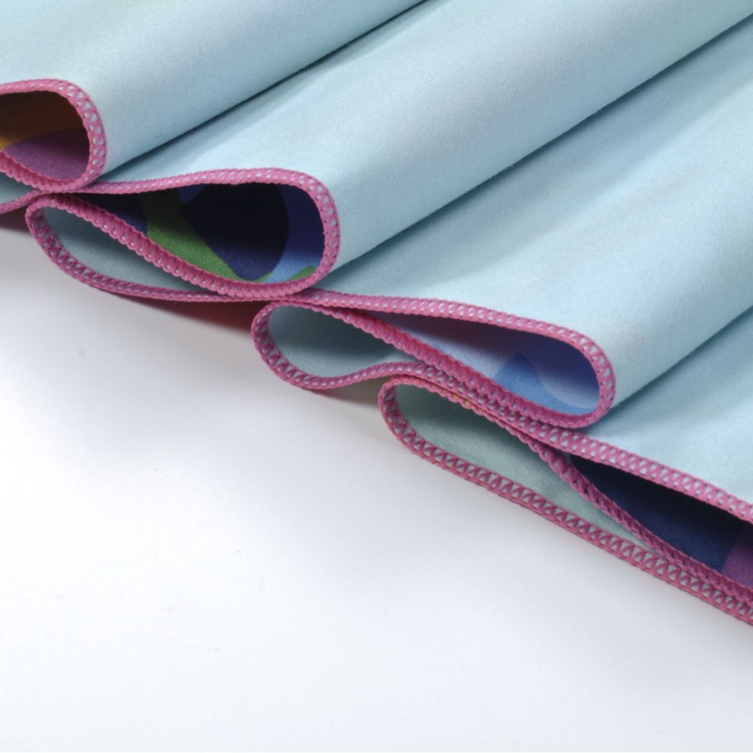 定制 200g超细纤维双面绒沙滩巾 满版印花织带不捻沙速干沙滩巾