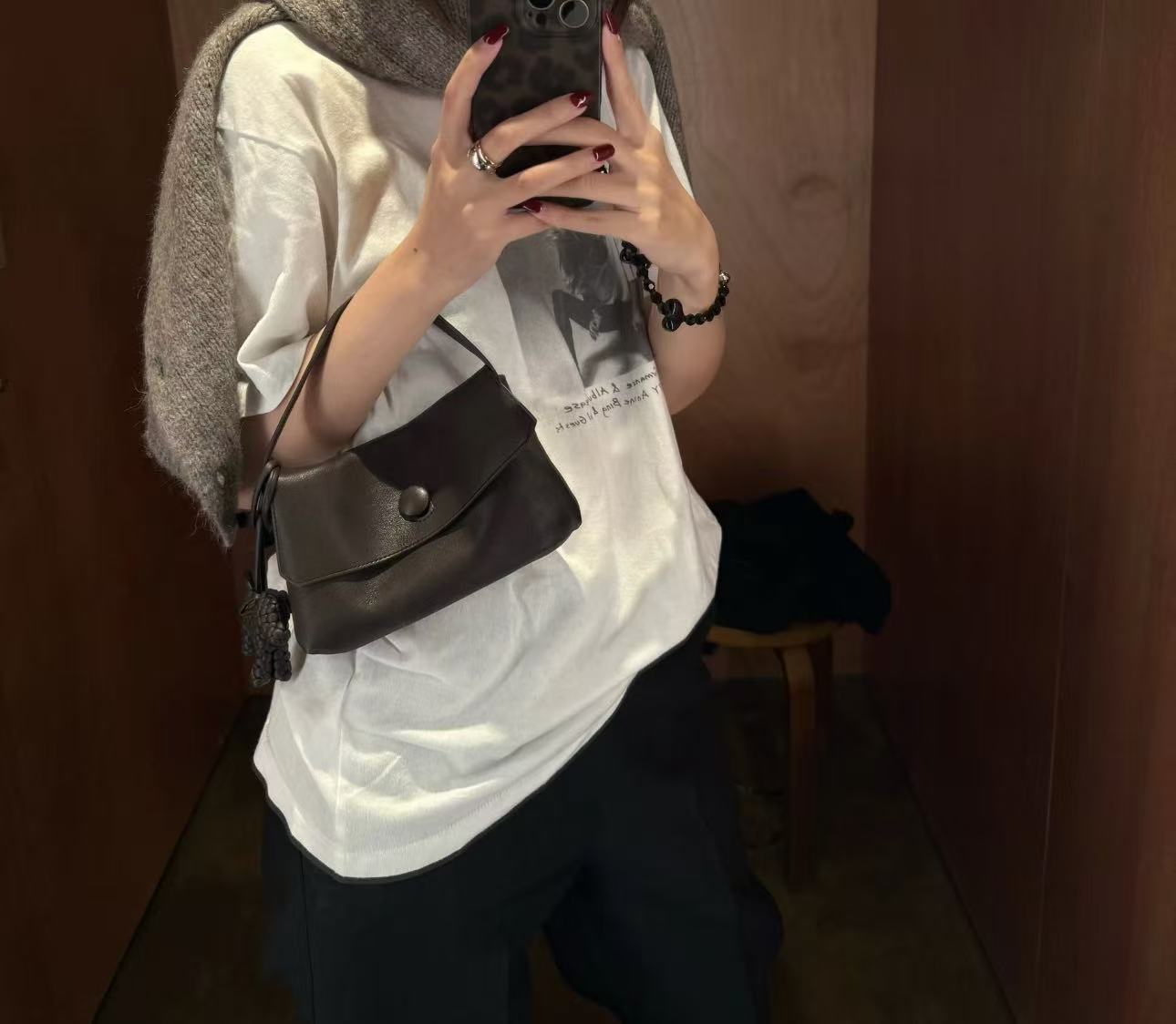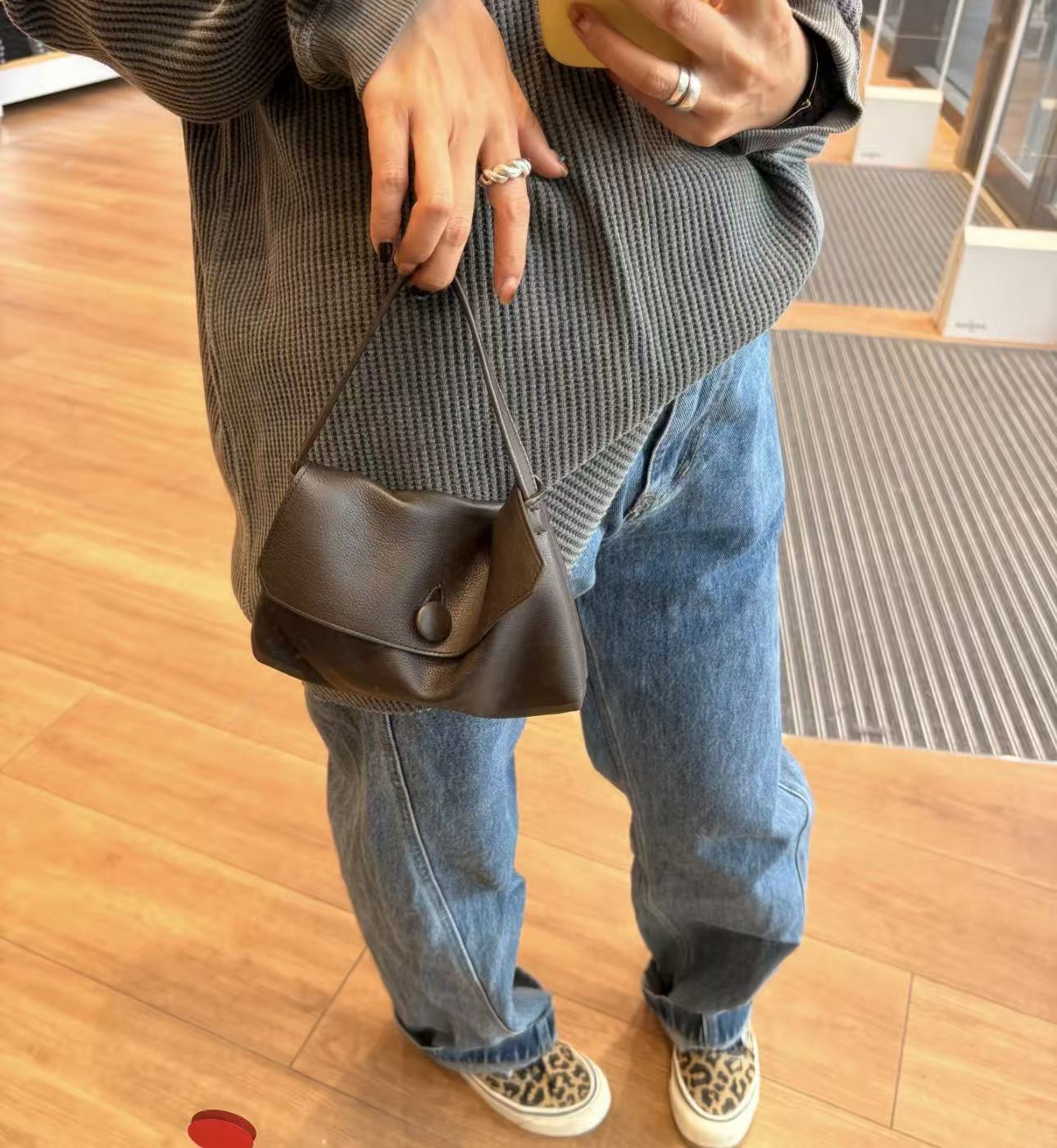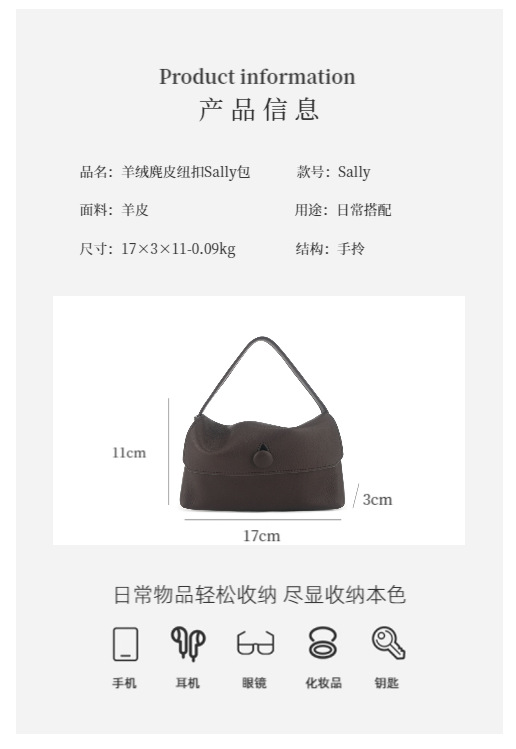 极简内羊绒麂皮纽扣Sally简约手机包手提时尚女包极简小方包
