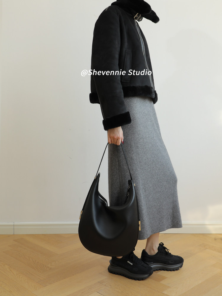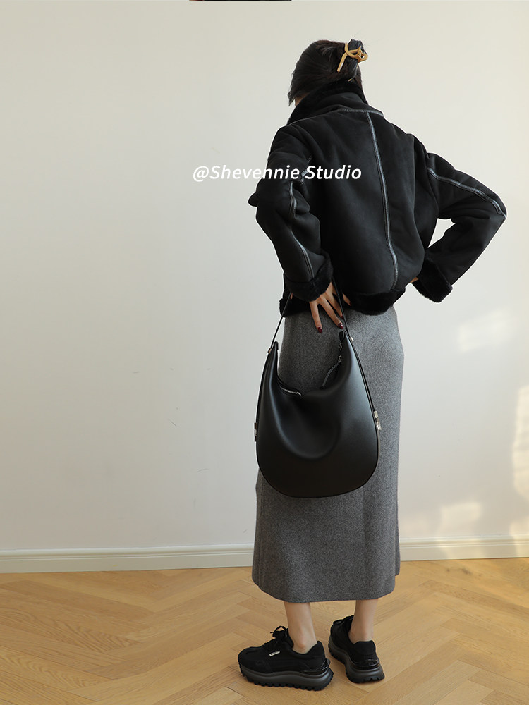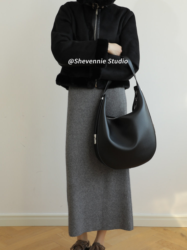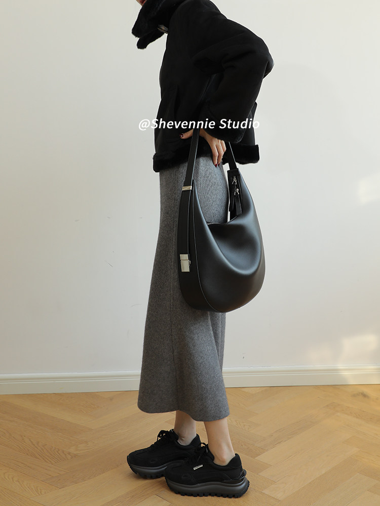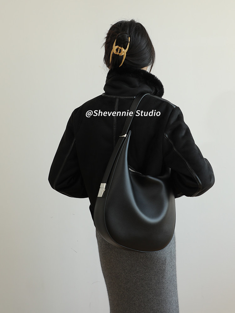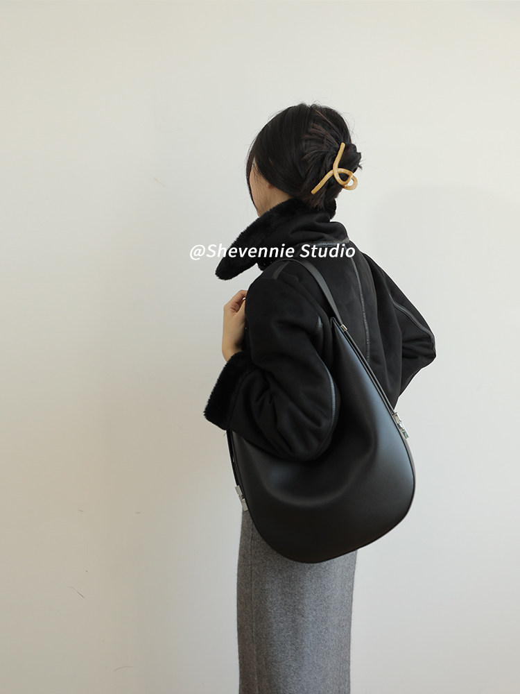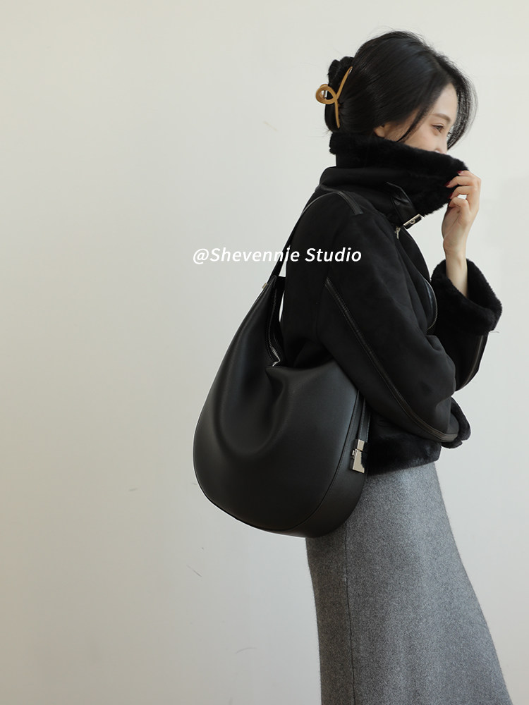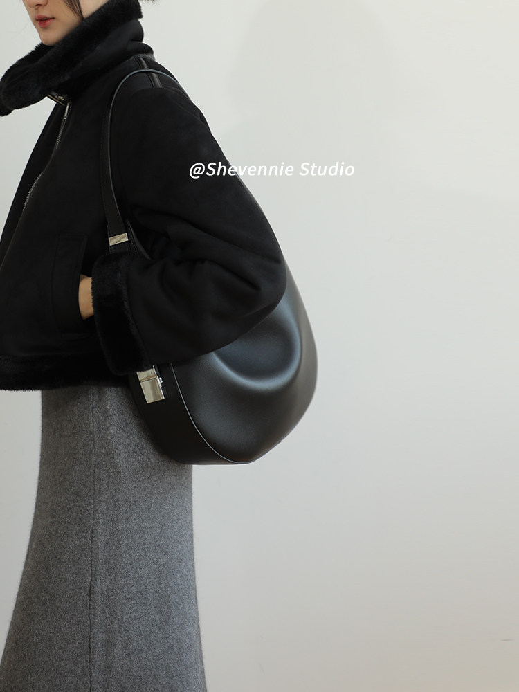 小众设计金属扣质感牛皮大号托特包腋下包女包斜挎复古通勤单肩