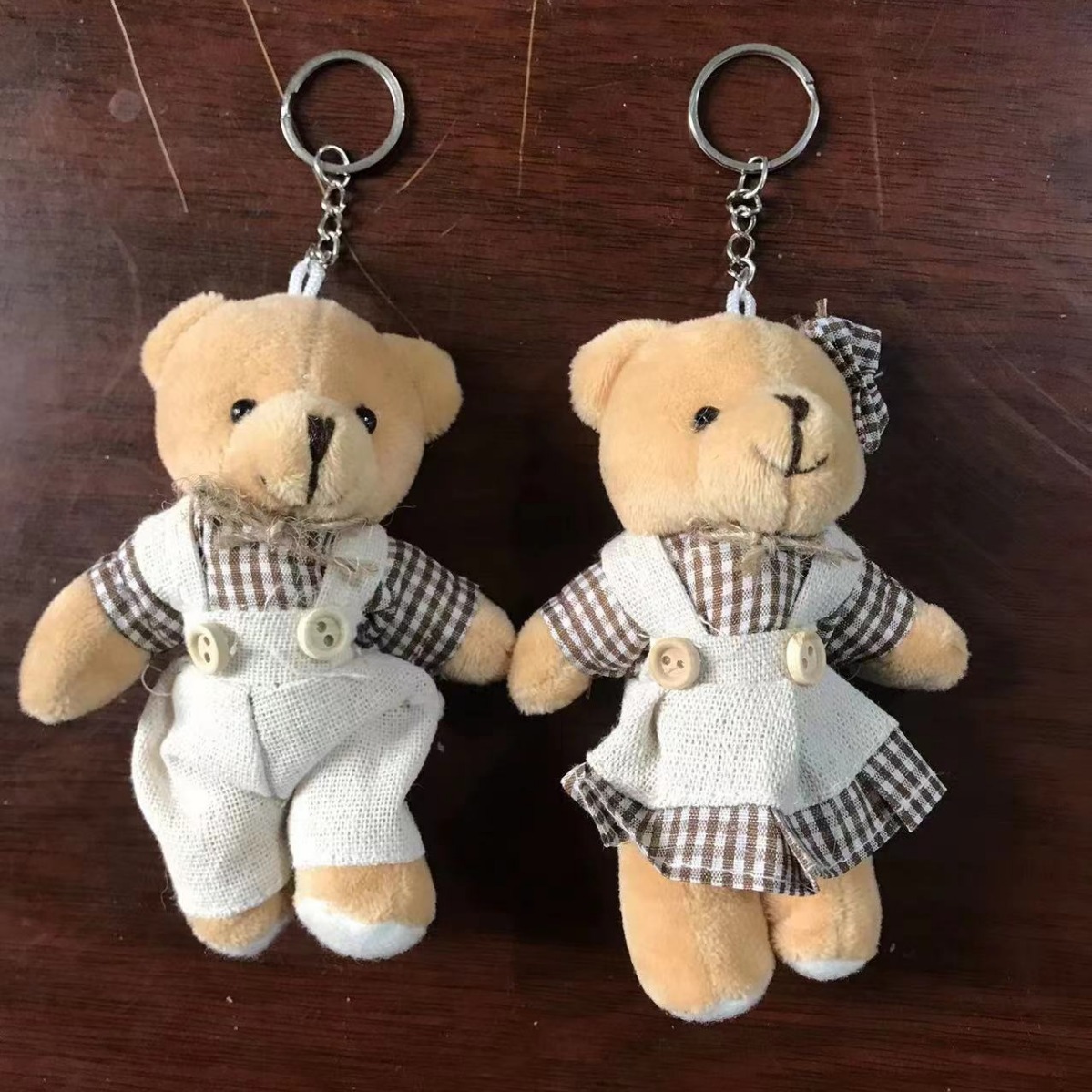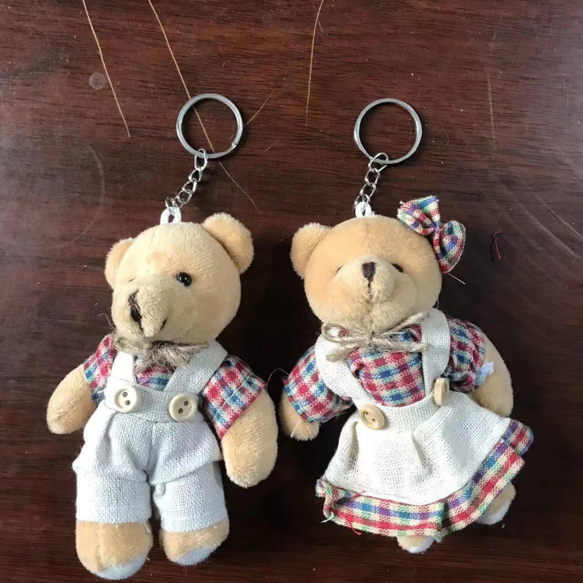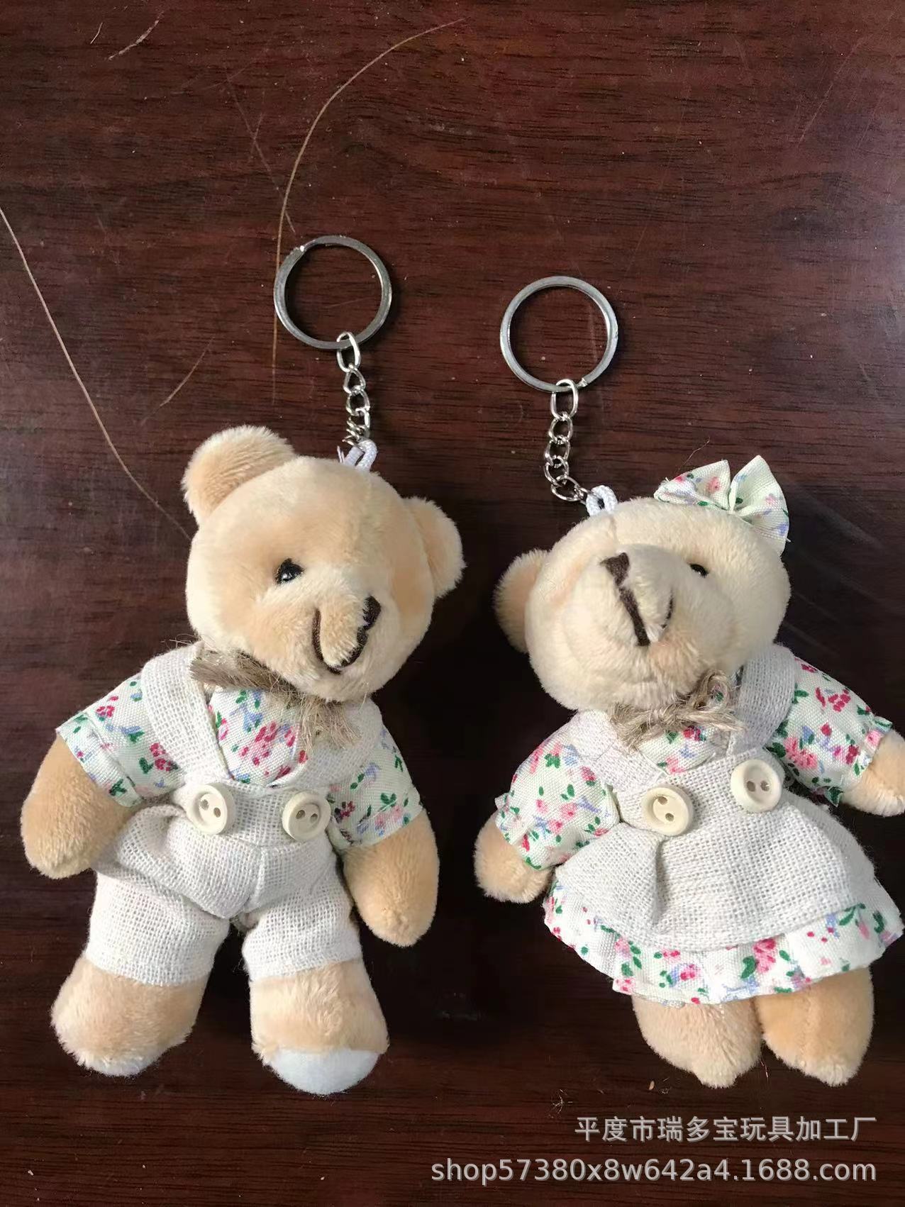碎花麻布情侣小熊毛绒公仔钥匙扣情侣小兔毛绒挂件书包包小挂饰 English | 投诉