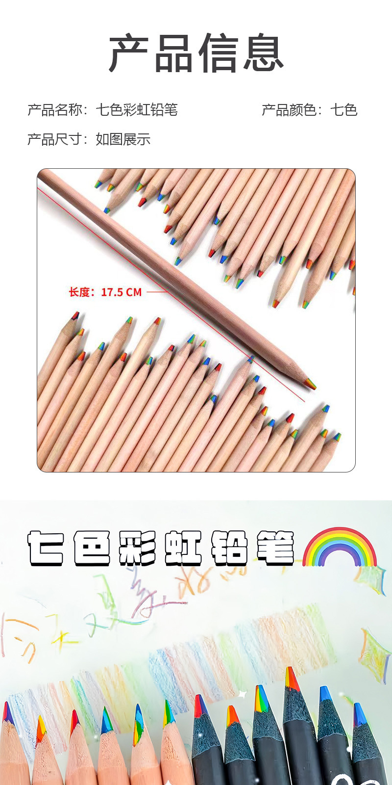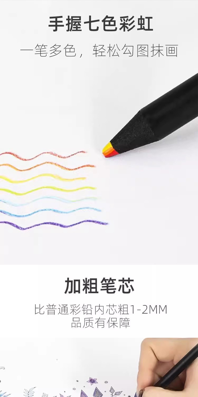 七色彩虹铅笔一笔多色铅笔彩虹笔渐变色彩混色彩铅笔手绘儿童画笔 English | 投诉