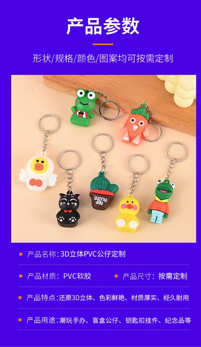 材质: PVC软胶 钥匙配饰分类: 钥匙扣 风格: 芭比娃娃 品牌: 格林家 产品编号: 3D公仔 货号: JFS002 是否进口: 否 样式: 男女通用 造型: 其他 挂件材质: 硅胶 包装: 独立包装 加印LOGO: 可以 加工定制: 是 类别: 钥匙挂件 专利号: 无 是否专利货源: 否 颜色: 无现货,按需定制 规格: 来图定制、来样定做 主要下游平台: ebay,亚马逊,速卖通 主要销售地区: 欧洲,南美,北美 重量: 0.32 kg/个