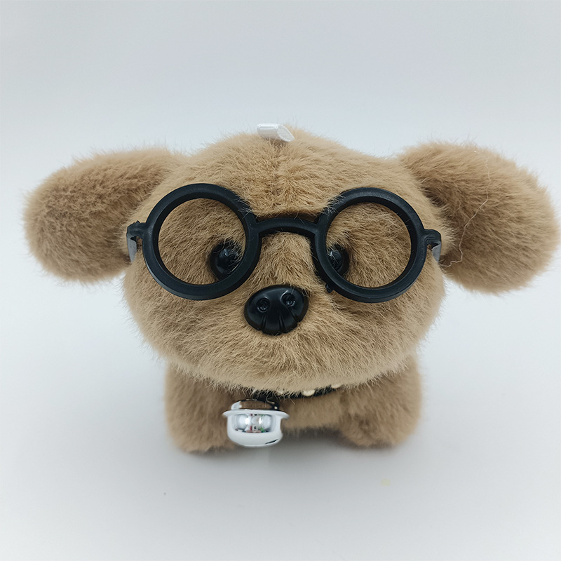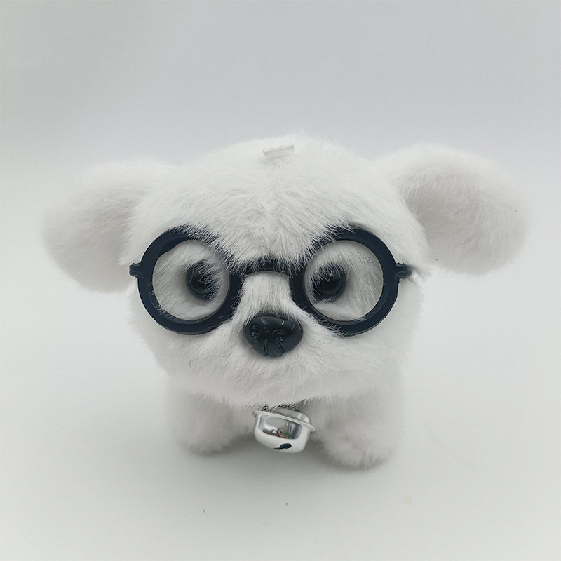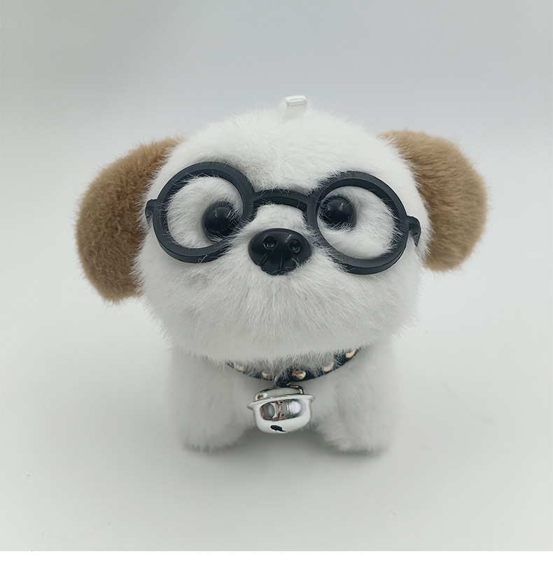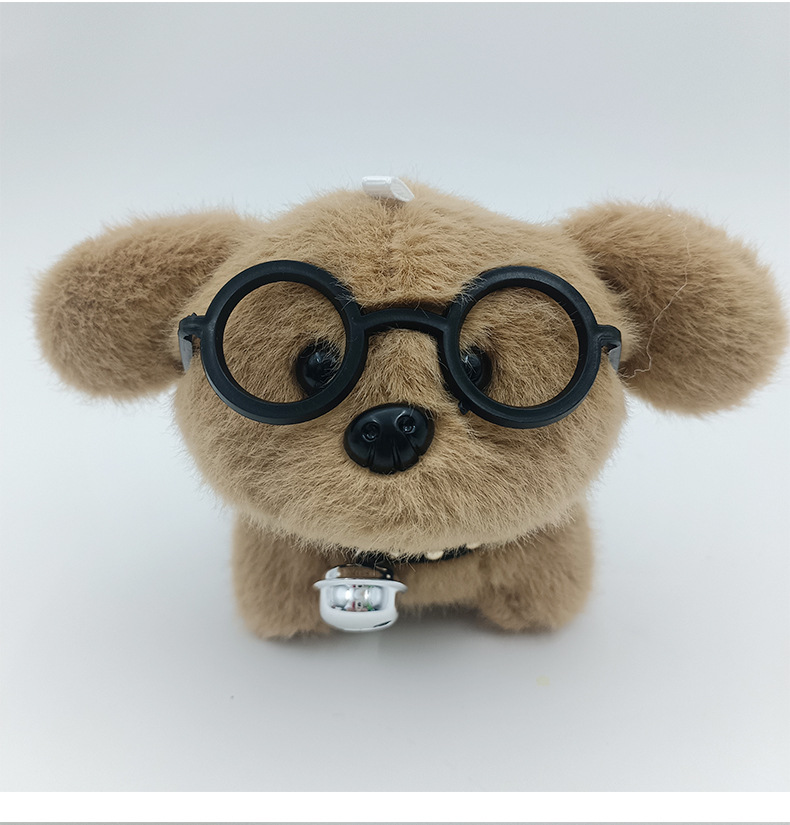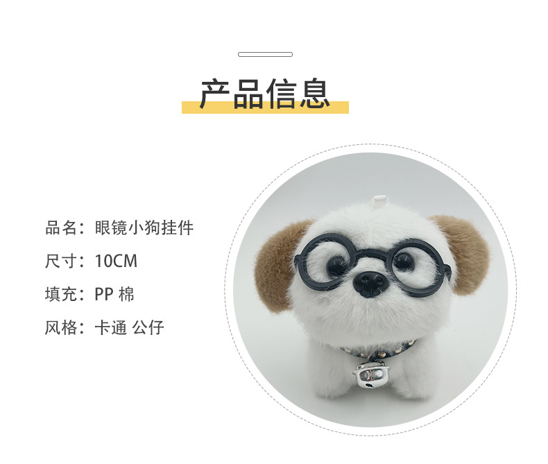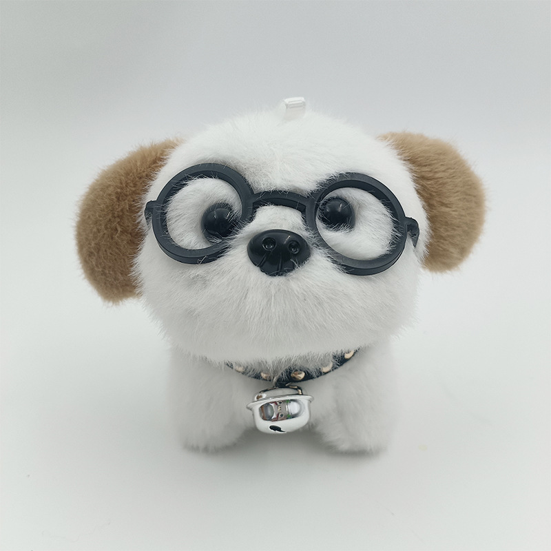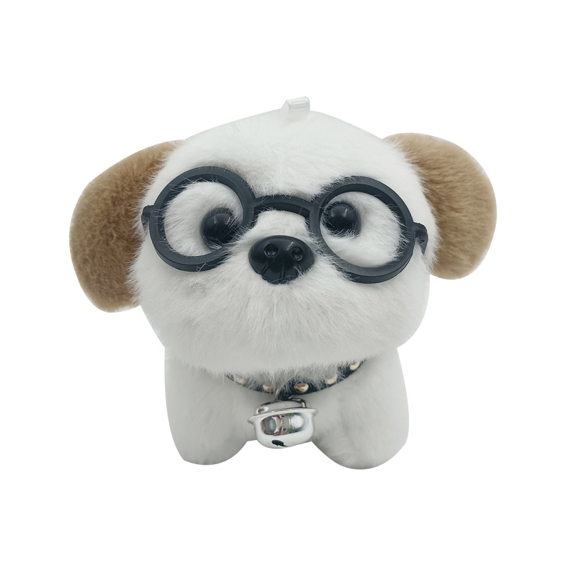 可爱卡通铃铛戴眼镜小狗钥匙扣挂件创意毛绒小狗公仔书包挂饰批发 English | 投诉