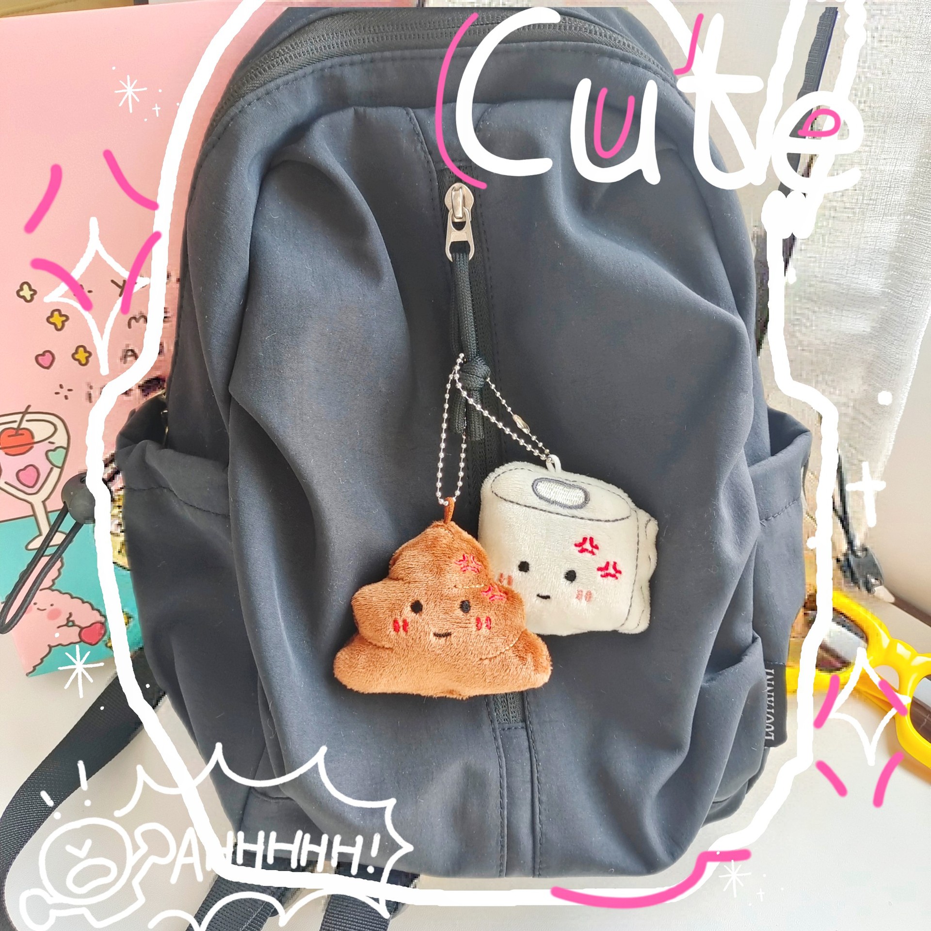 文创潮玩毛绒小挂件搞怪表情公仔上厕所搭子学生闺蜜包包可爱挂饰 English | 投诉