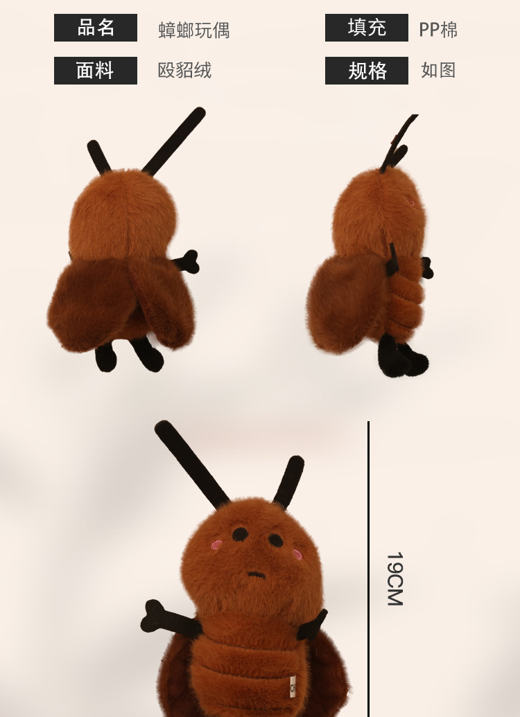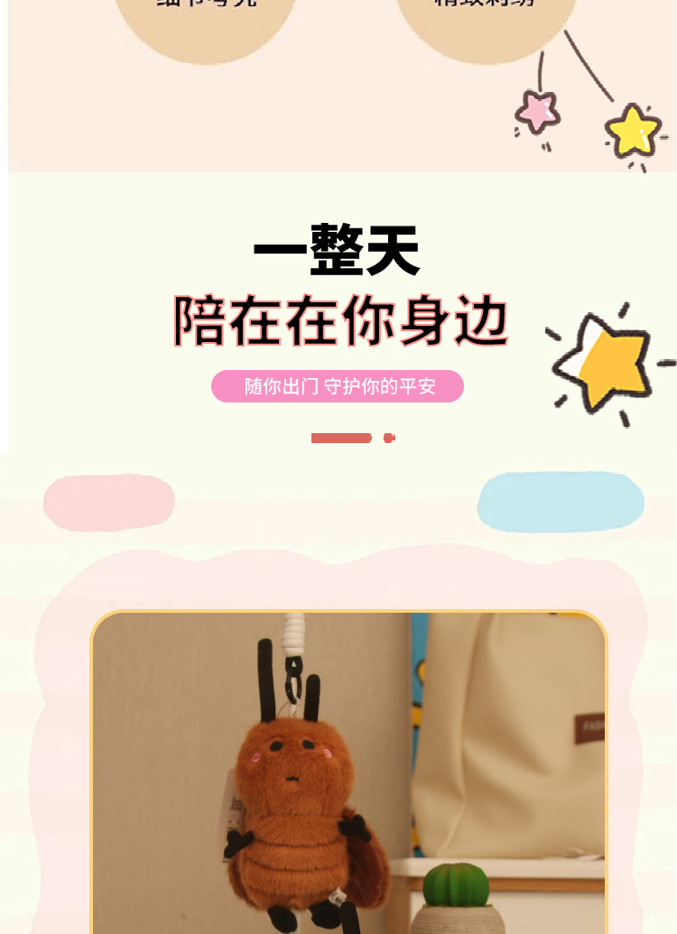 网红可爱萌小蟑螂挂件毛绒玩具公仔虫子包包挂饰钥匙扣布娃娃玩偶 English | 投诉