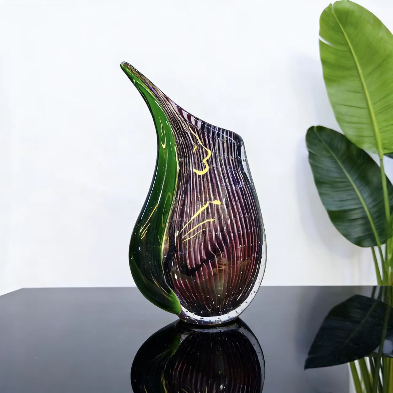 手工吹制轻奢复古花瓶尺寸:12*.5*6*22cm,材料晶莹剔透,色料烧到料子里面,色彩鲜艳,光泽亮丽,永久不褪色,非常厚重有质感。