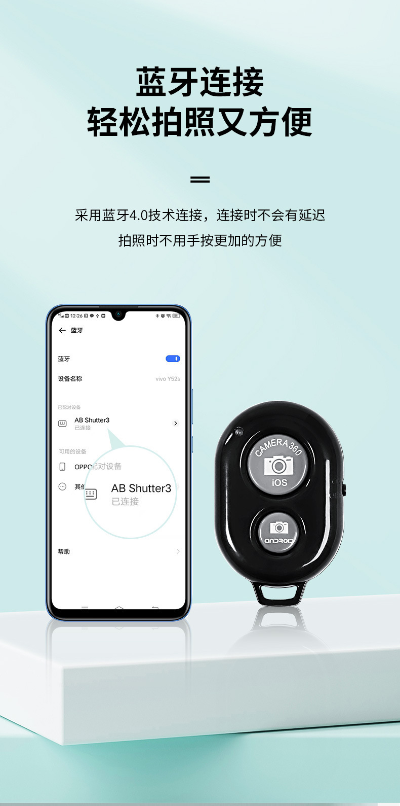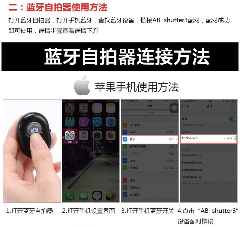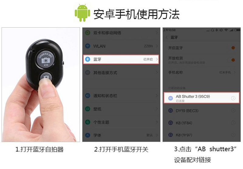 名称为:ABshutter3(可以免费定制蓝牙搜索名称)