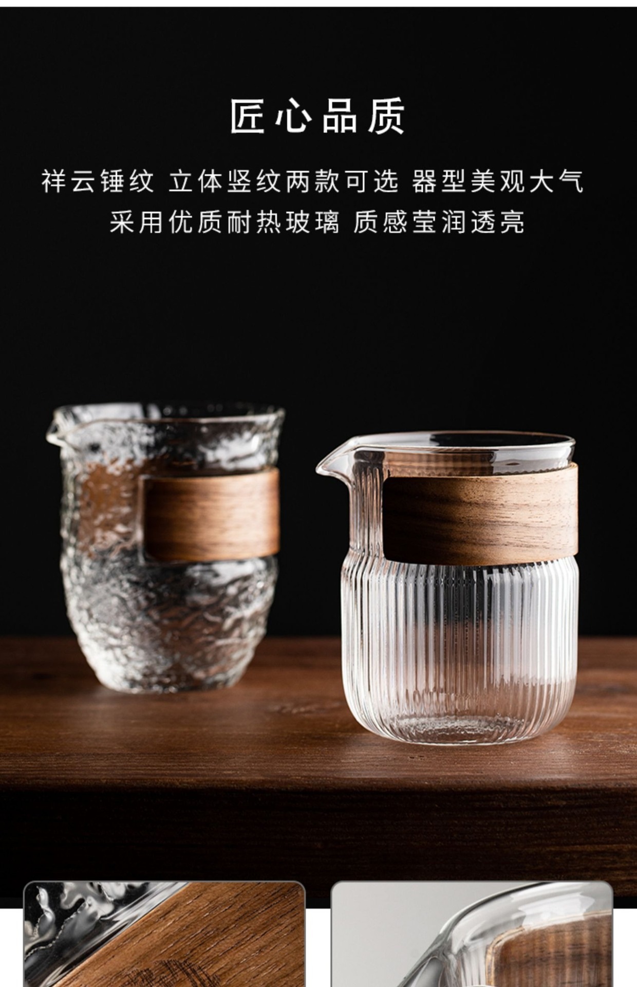 高硼硅透明日式玻璃公道杯家用公杯带隔热木圈分茶器功夫茶海套装 English | 投诉