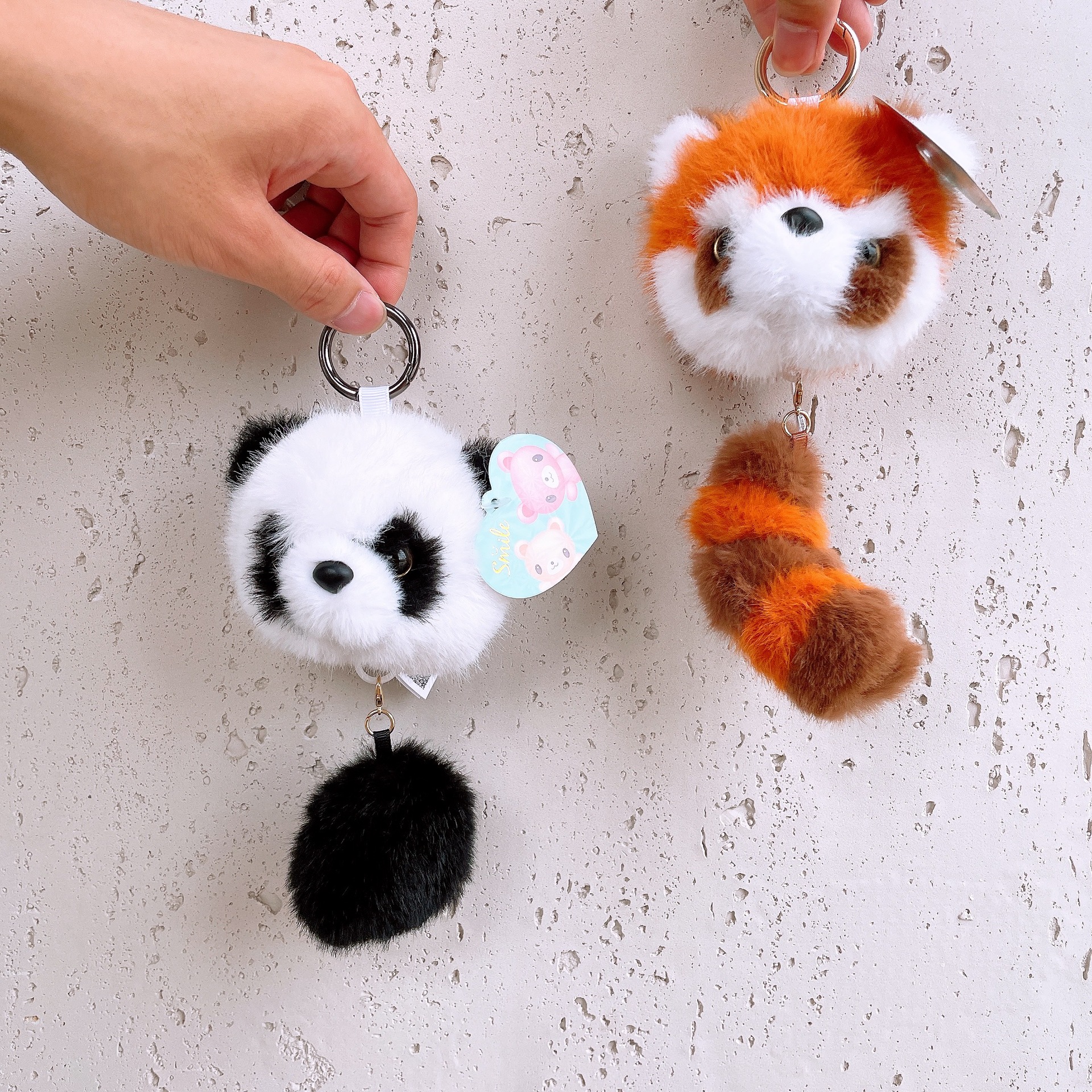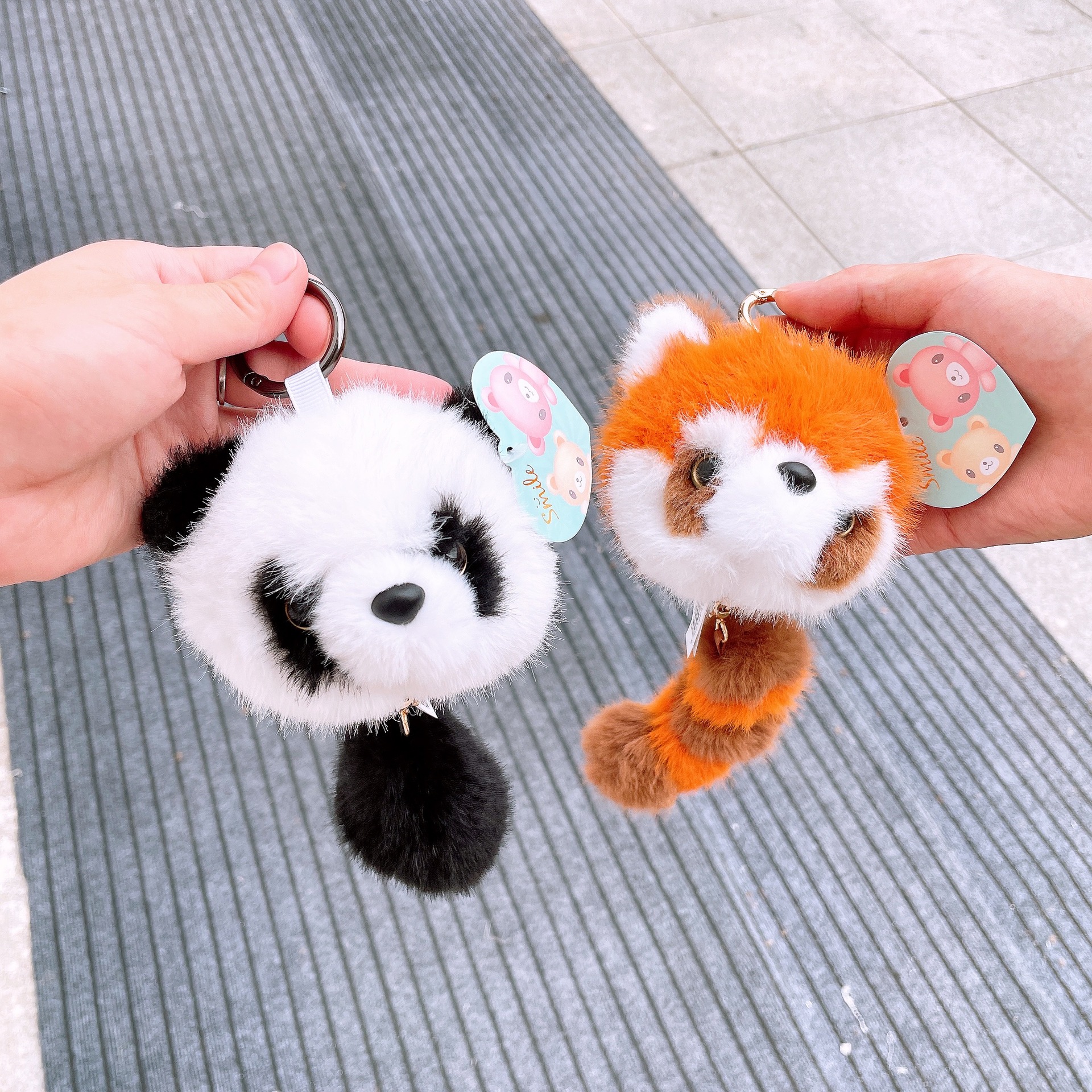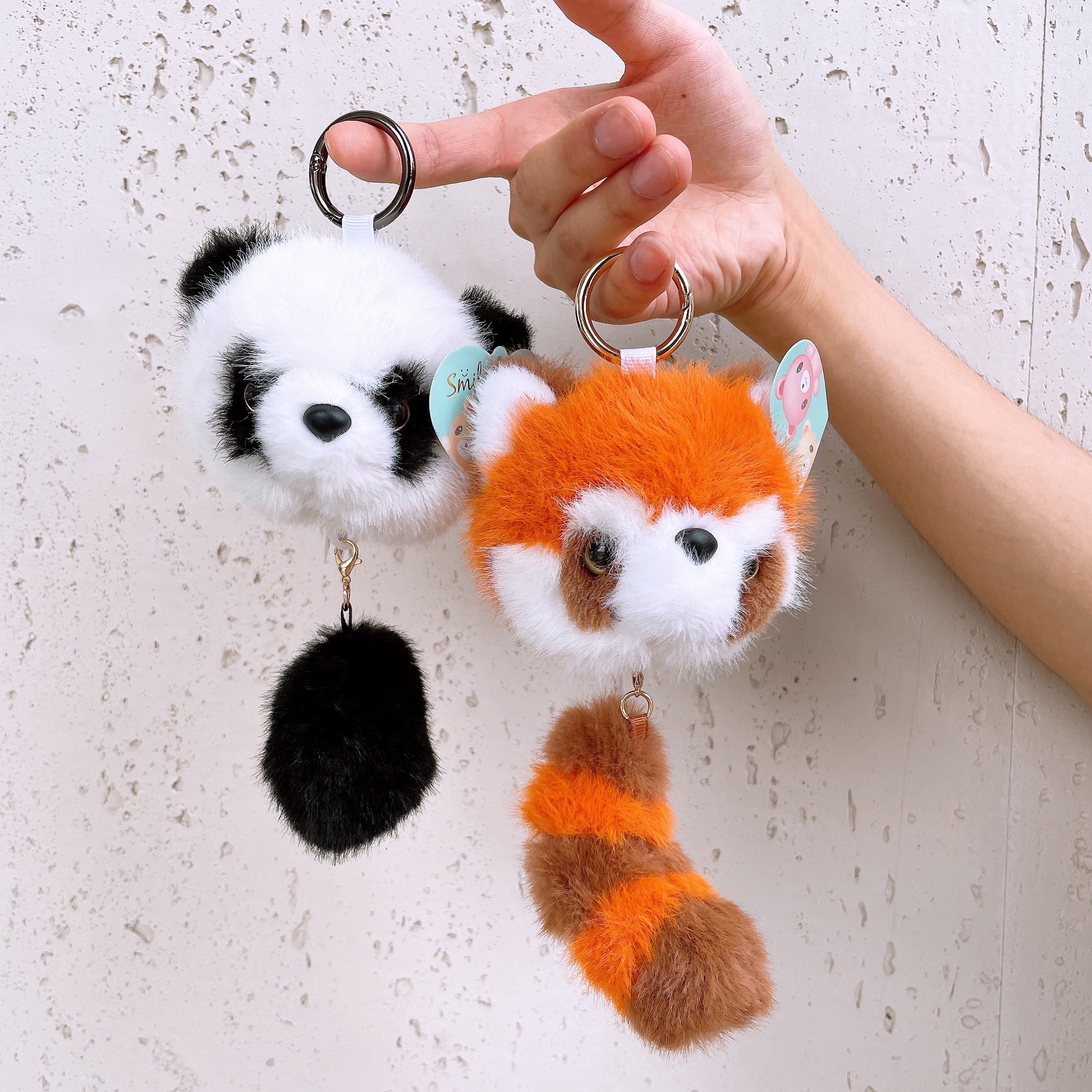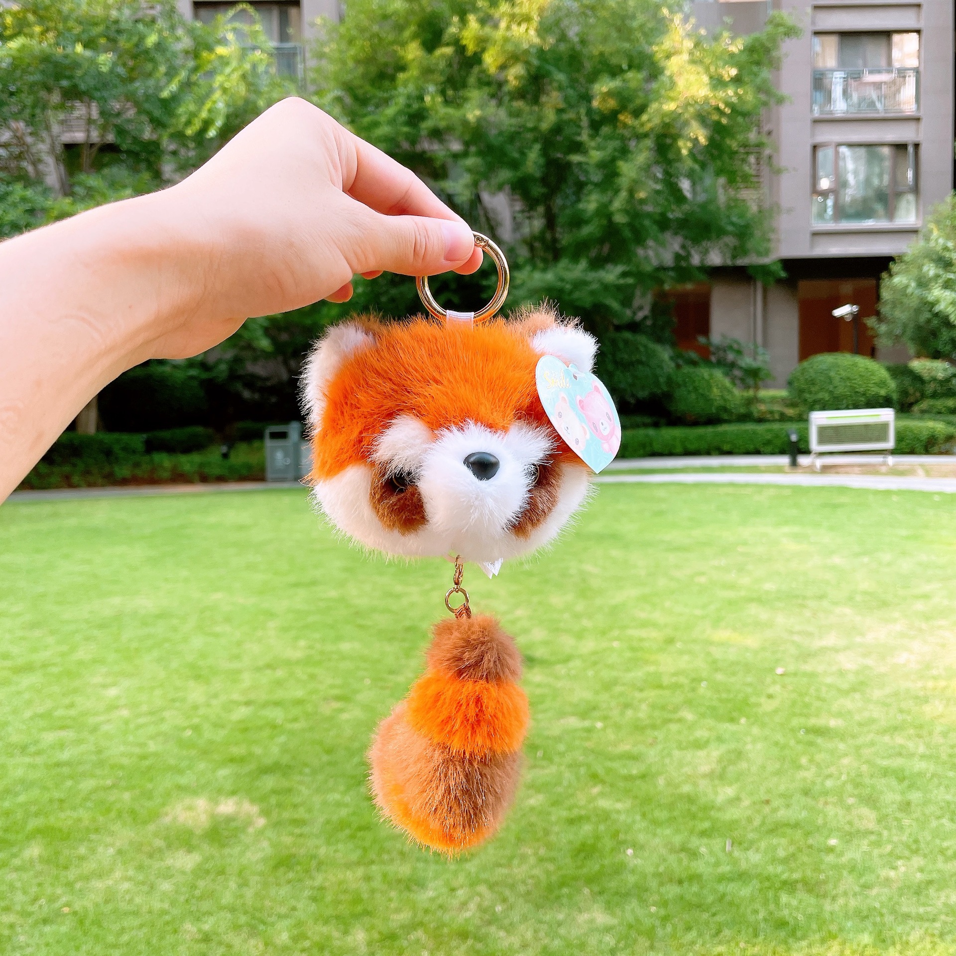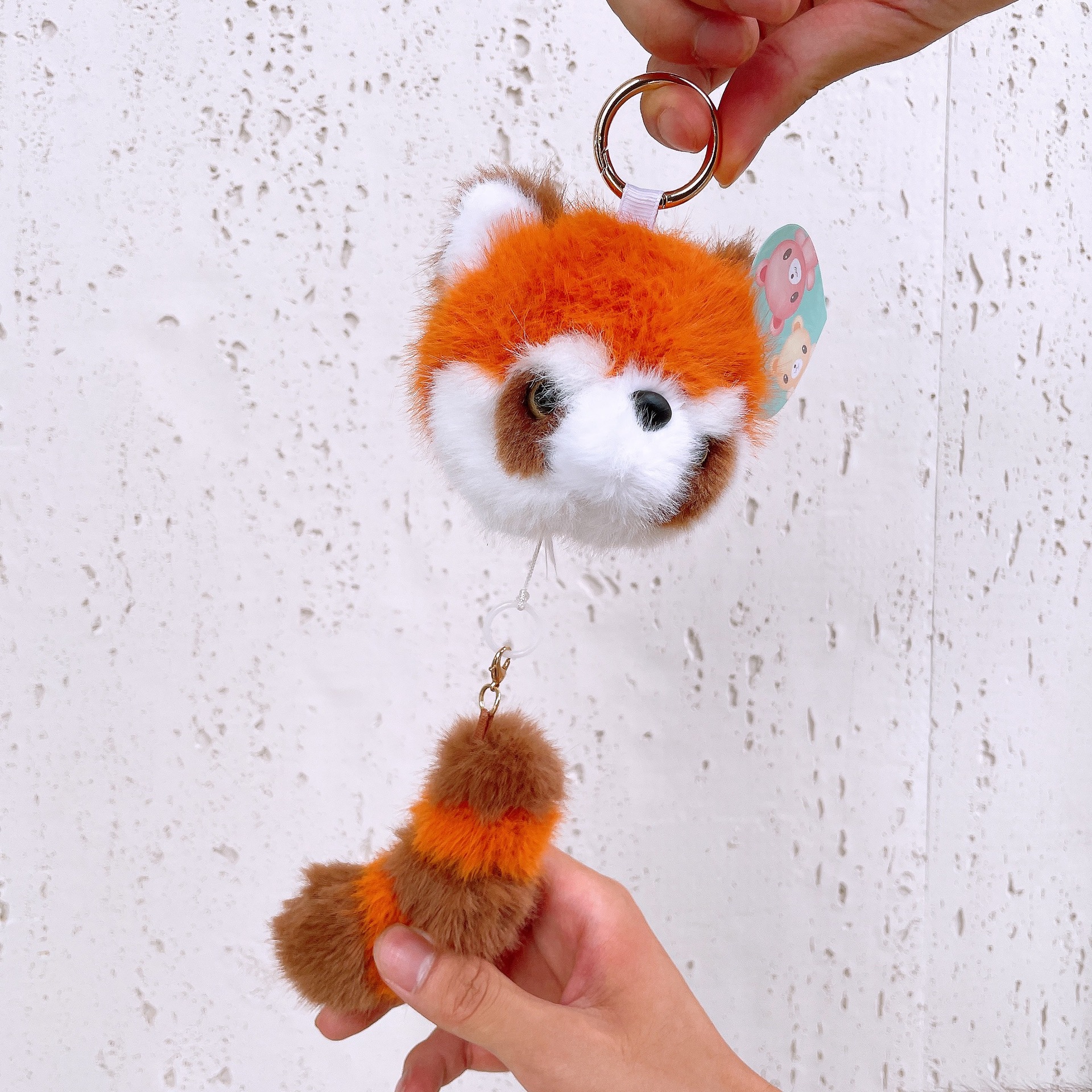 现货熊猫基地熊猫尾巴拉线包包挂件动物园小浣熊拉线钥匙扣玩偶 English | 投诉