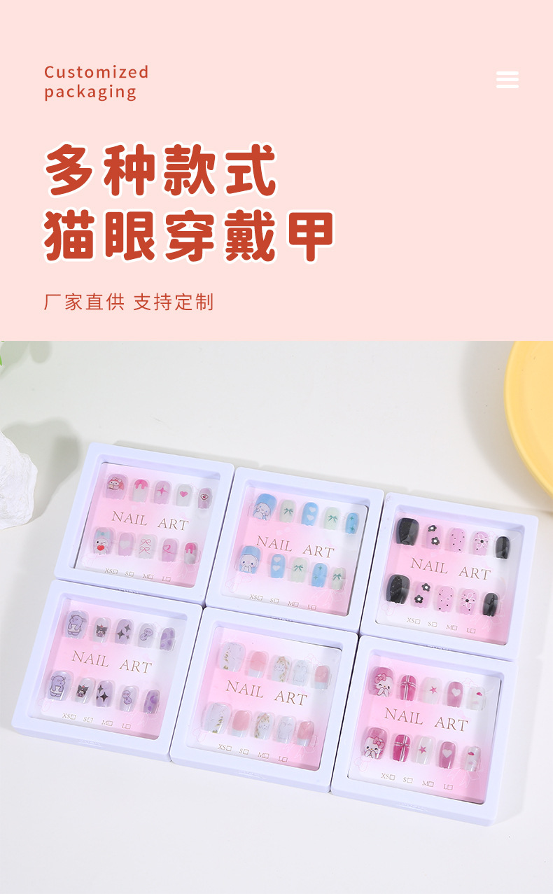 创意新款猫眼穿戴甲女生卡通可爱公主美甲贴梦幻炫彩指甲贴小批发 English | 投诉