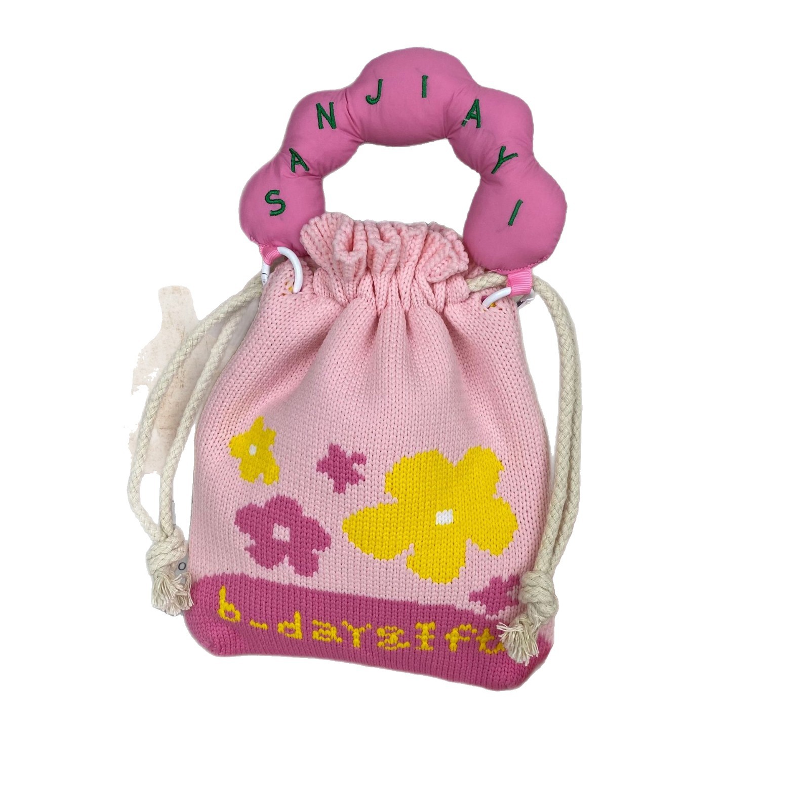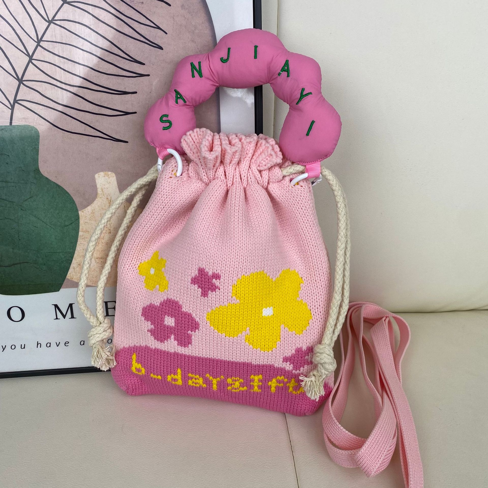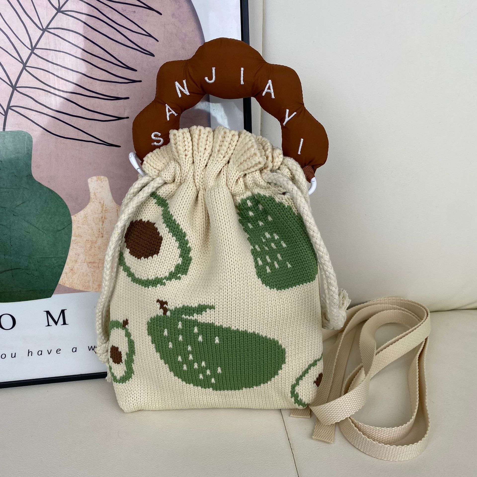 材质: 涤纶 箱包大小: 小 里料质地: 涤纶 箱包潮流款式: 托特包 流行元素: 编织 硬度: 软 颜色: 绿色牛油果抽绳手机包,粉色英文花花抽绳手 风格: 清新甜美 箱包形状: 水桶型 开盖方式: 敞口 加工方式: 针织 外袋种类: 敞口袋 有可授权的自有品牌: 是 有无夹层: 无 适用场景: 日常搭配 针织包包: 韩版ins 编织包包厂家 针织 包包一件代发: 包包定制 针织包图案定制 小 重量: 0.138 kg/个