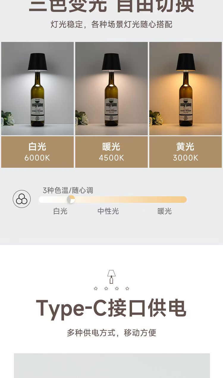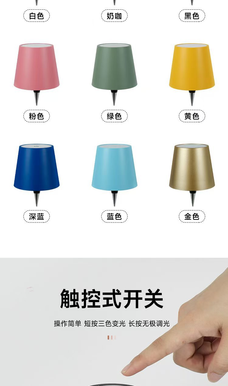 外箱尺寸:57-34.5-22cm一箱30个 整箱毛重:9kg 彩盒尺寸:11-11-10.5cm 产品尺寸:宽10.5-高14.5cm 单个毛重:0.23kg 产品净重:0.18kg 材质:塑料 电池容量:1200毫安 功能:三色变光,长按无极调光