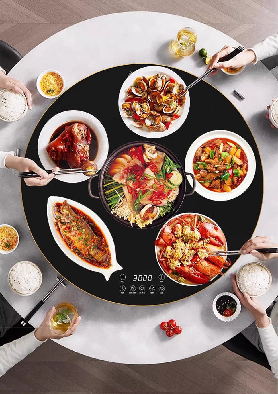 | 100CM【火锅电磁炉款3000W】电动旋转-语音控制-白色大理石纹 | ¥73370 | 998件可售 |