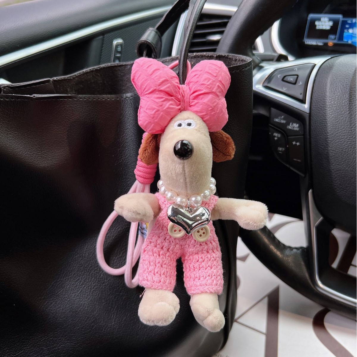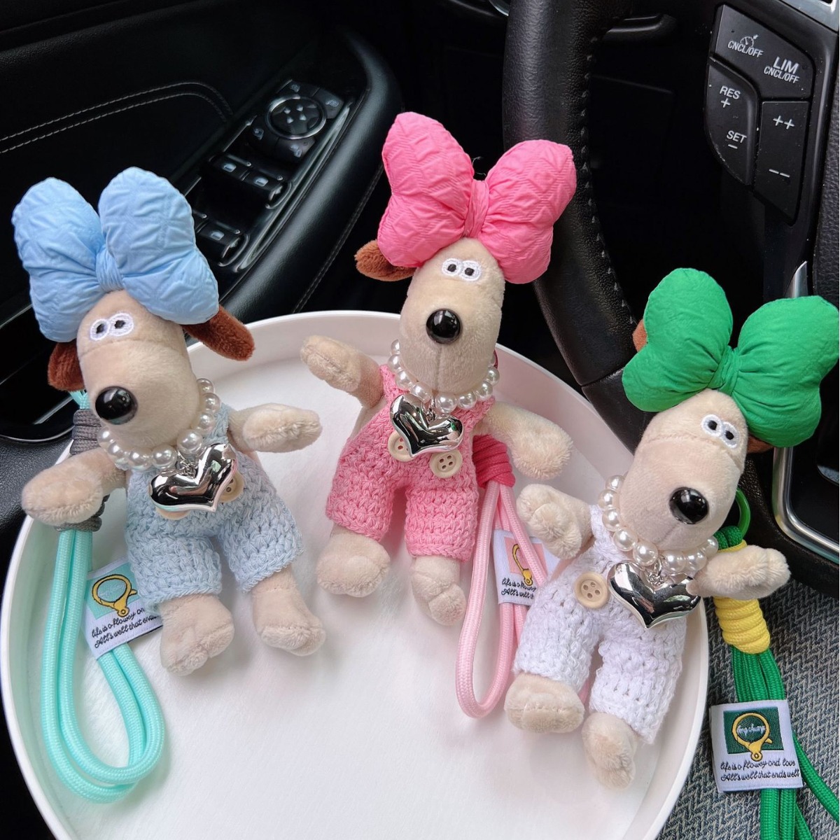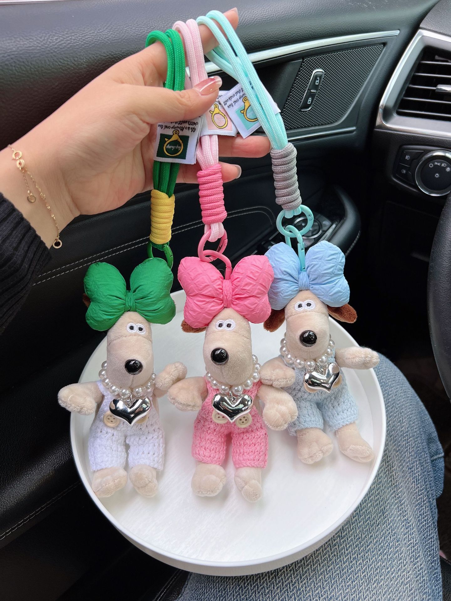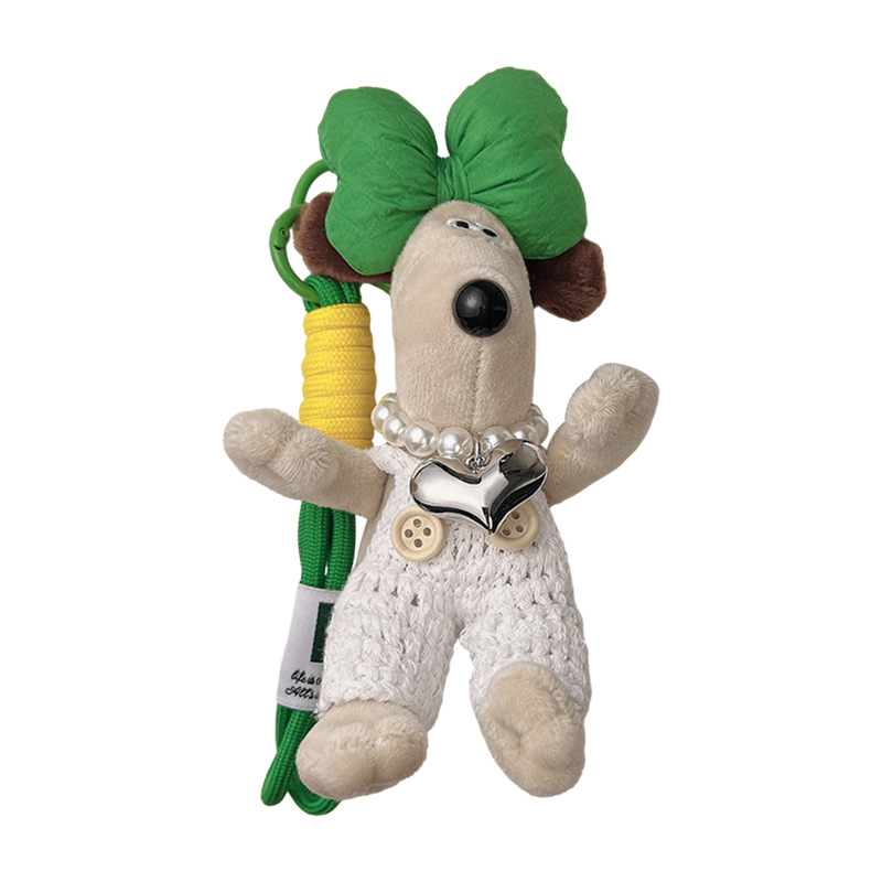 可爱棉绳毛线掌门狗钥匙扣珍珠爱心项链狗狗玩偶情侣钥匙扣背包扣