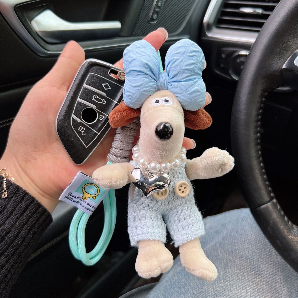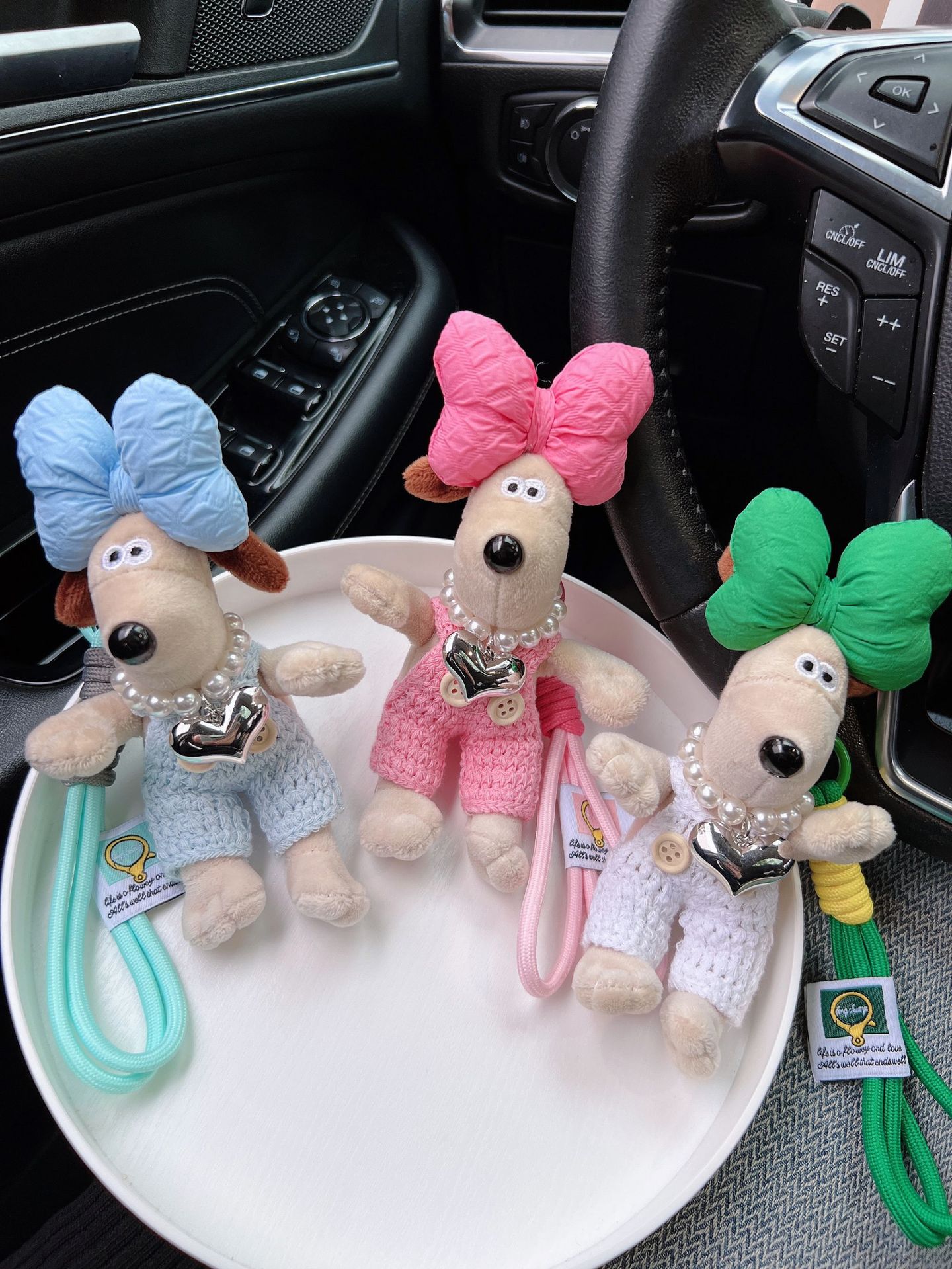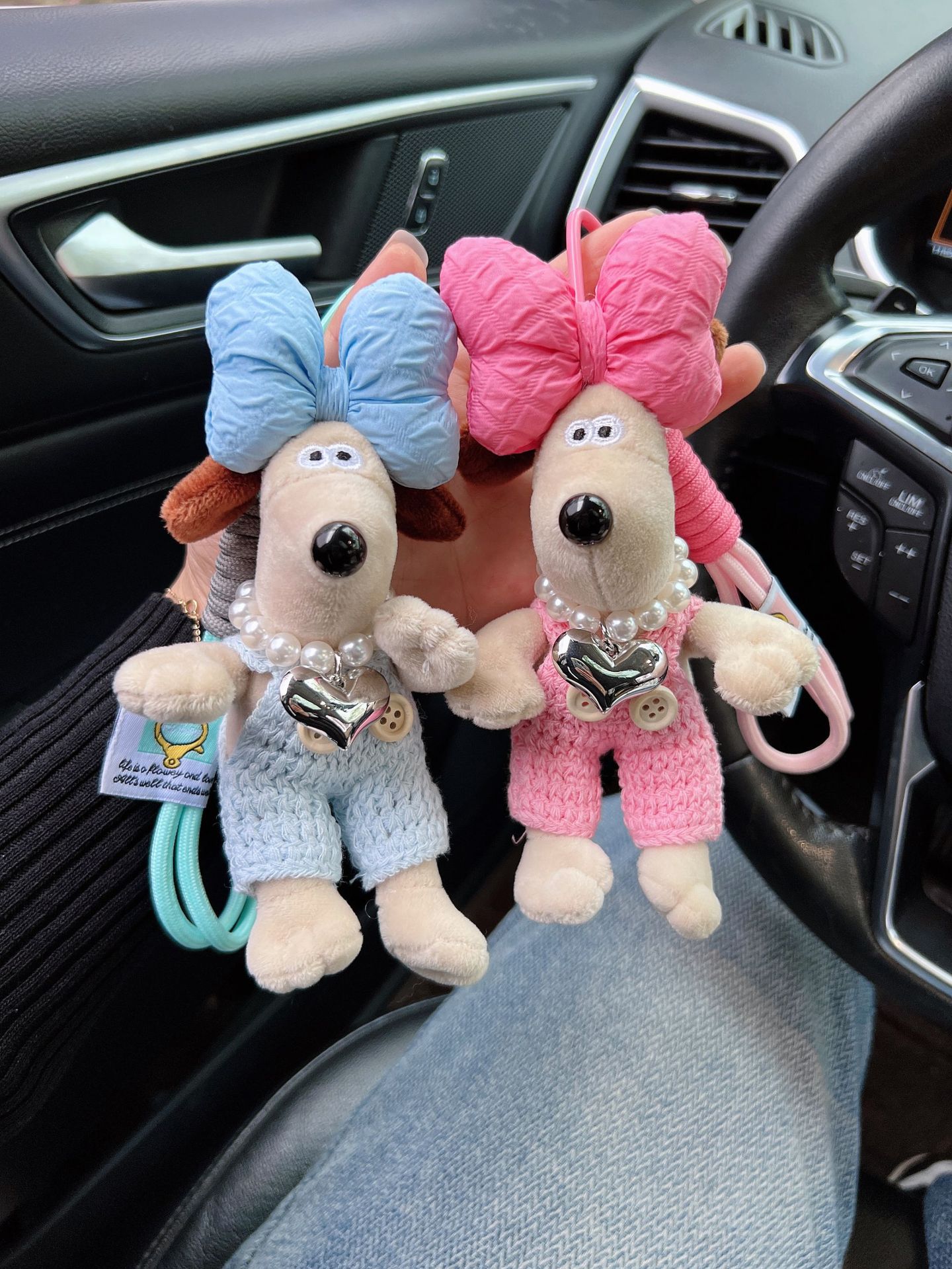 可爱棉绳毛线掌门狗钥匙扣珍珠爱心项链狗狗玩偶情侣钥匙扣背包扣