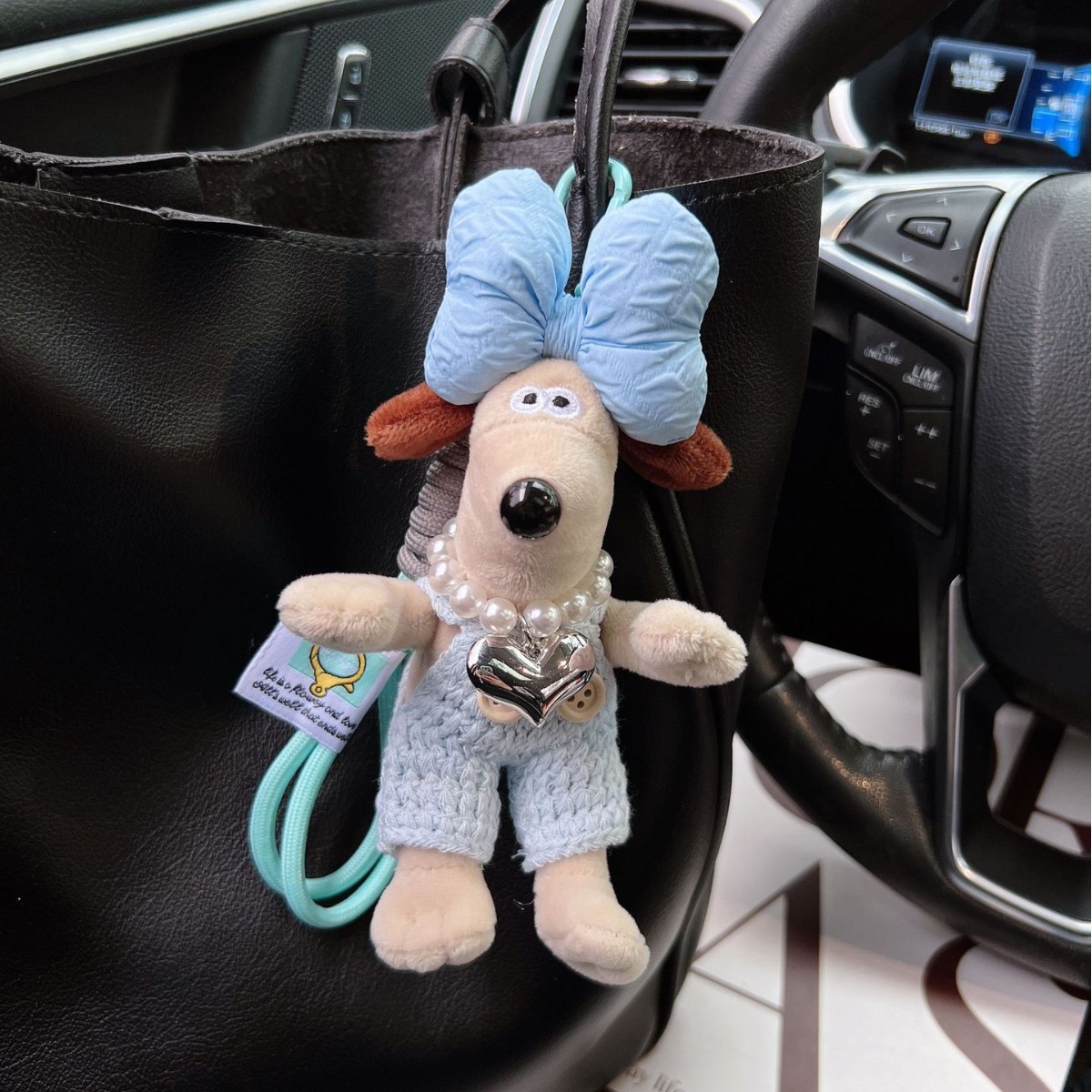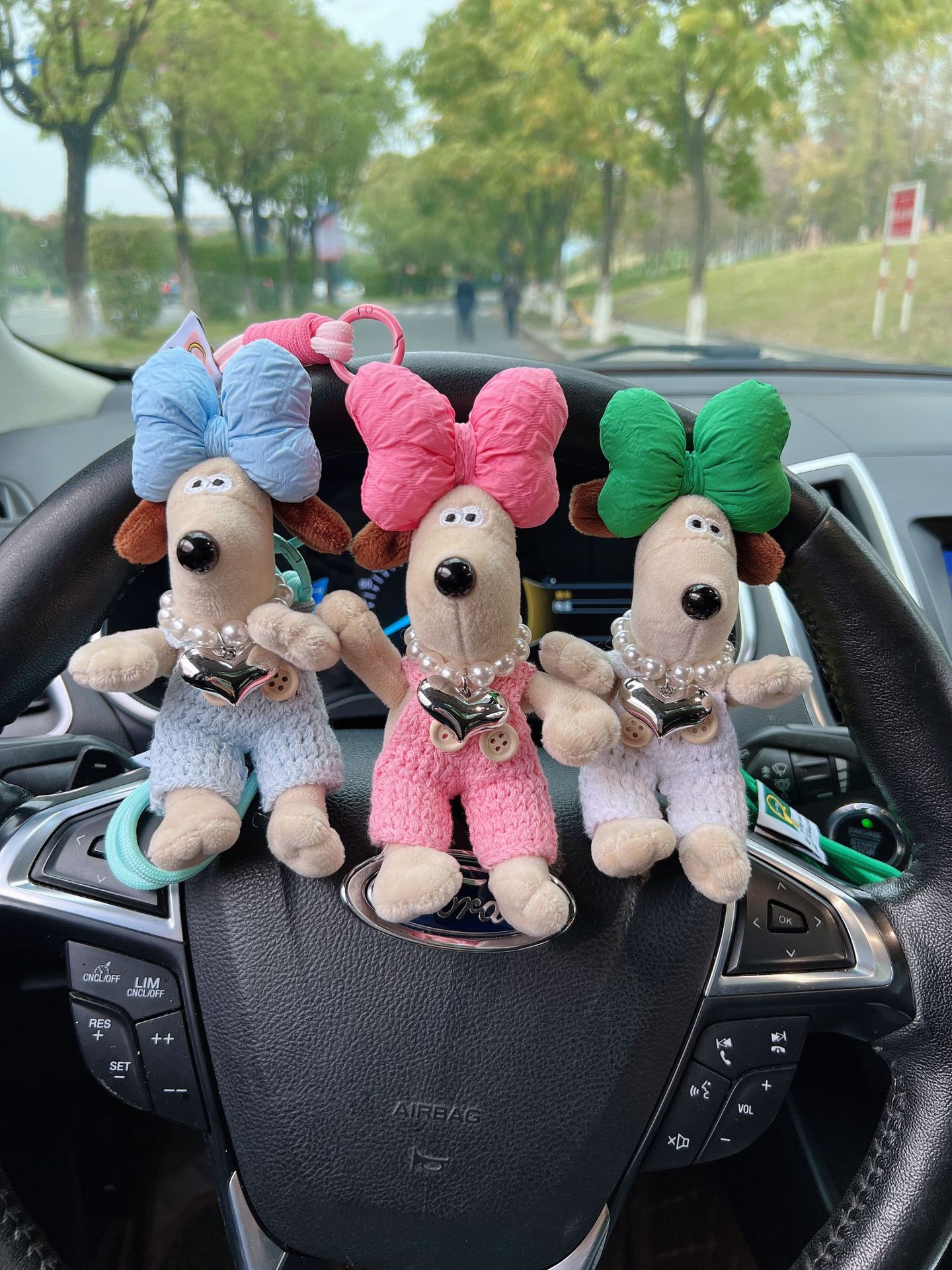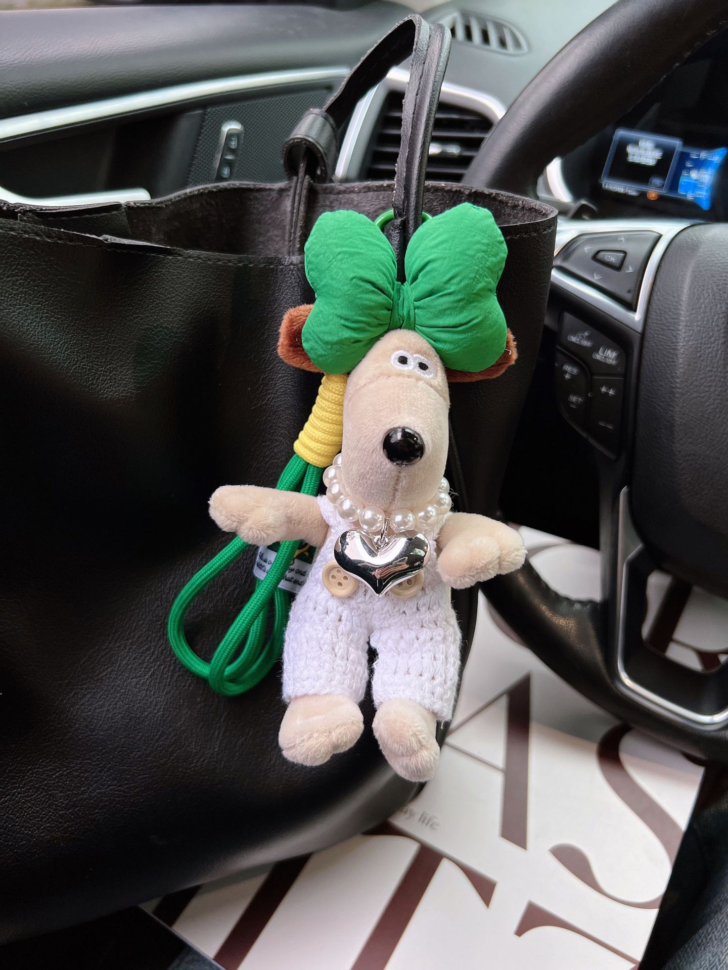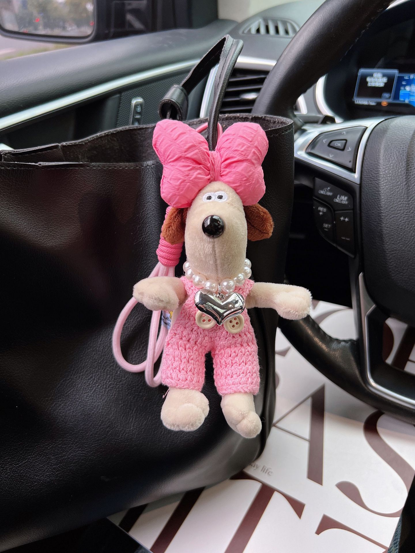 可爱棉绳毛线掌门狗钥匙扣珍珠爱心项链狗狗玩偶情侣钥匙扣背包扣