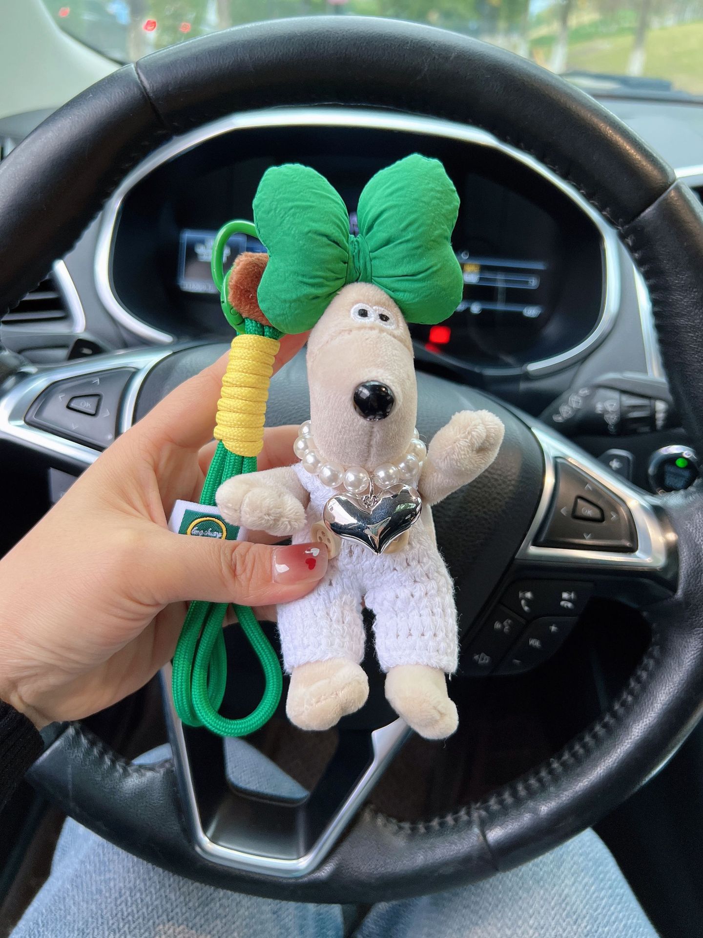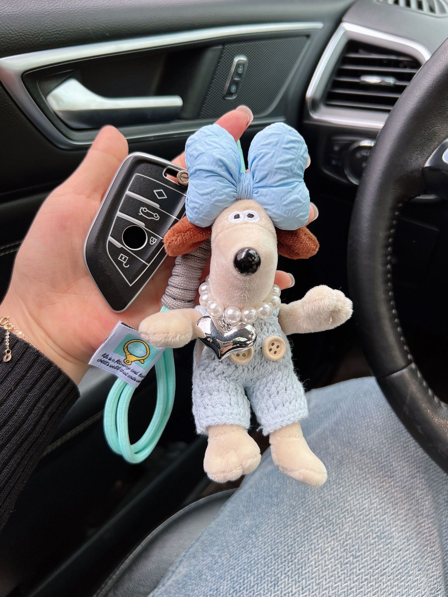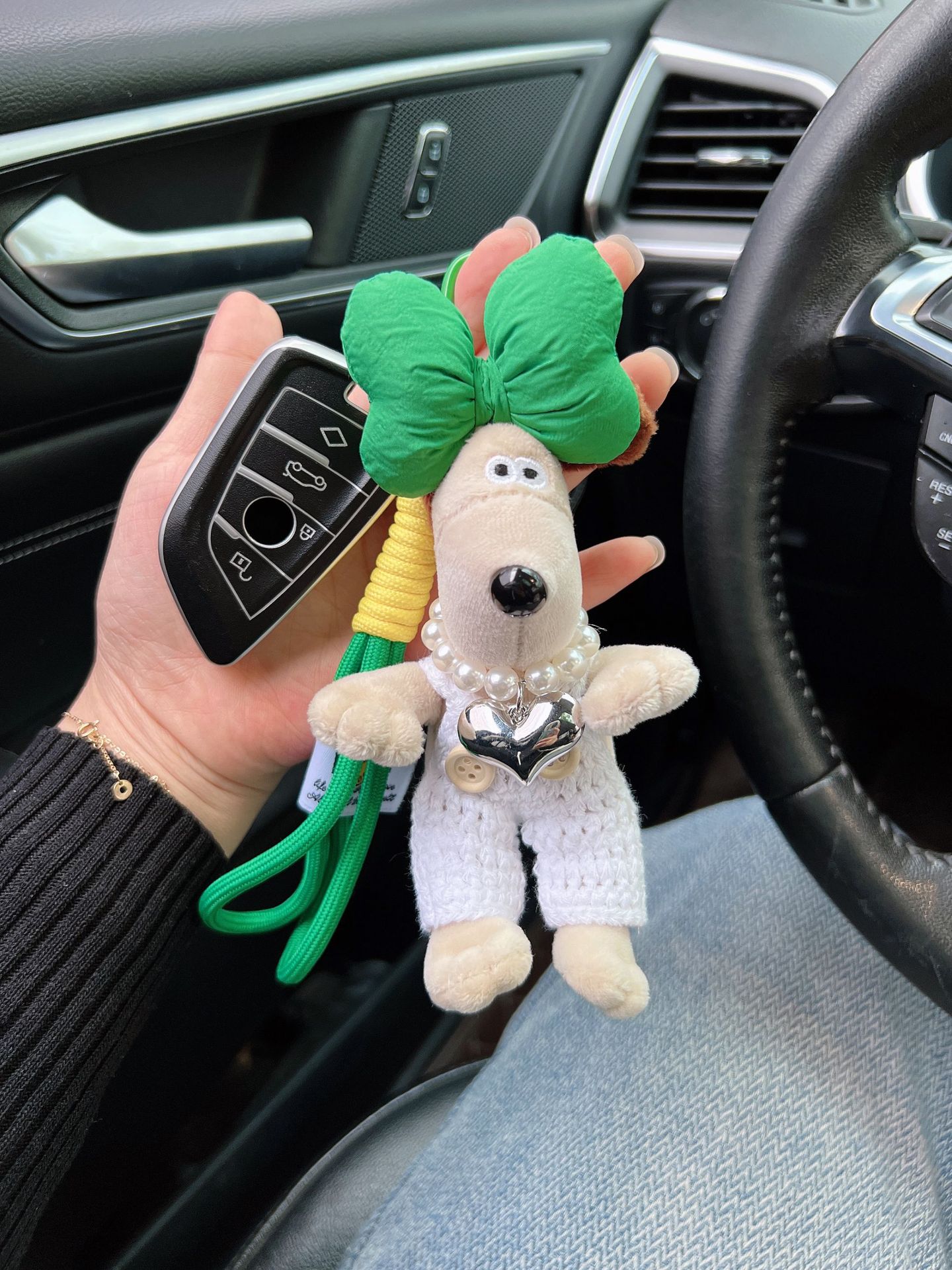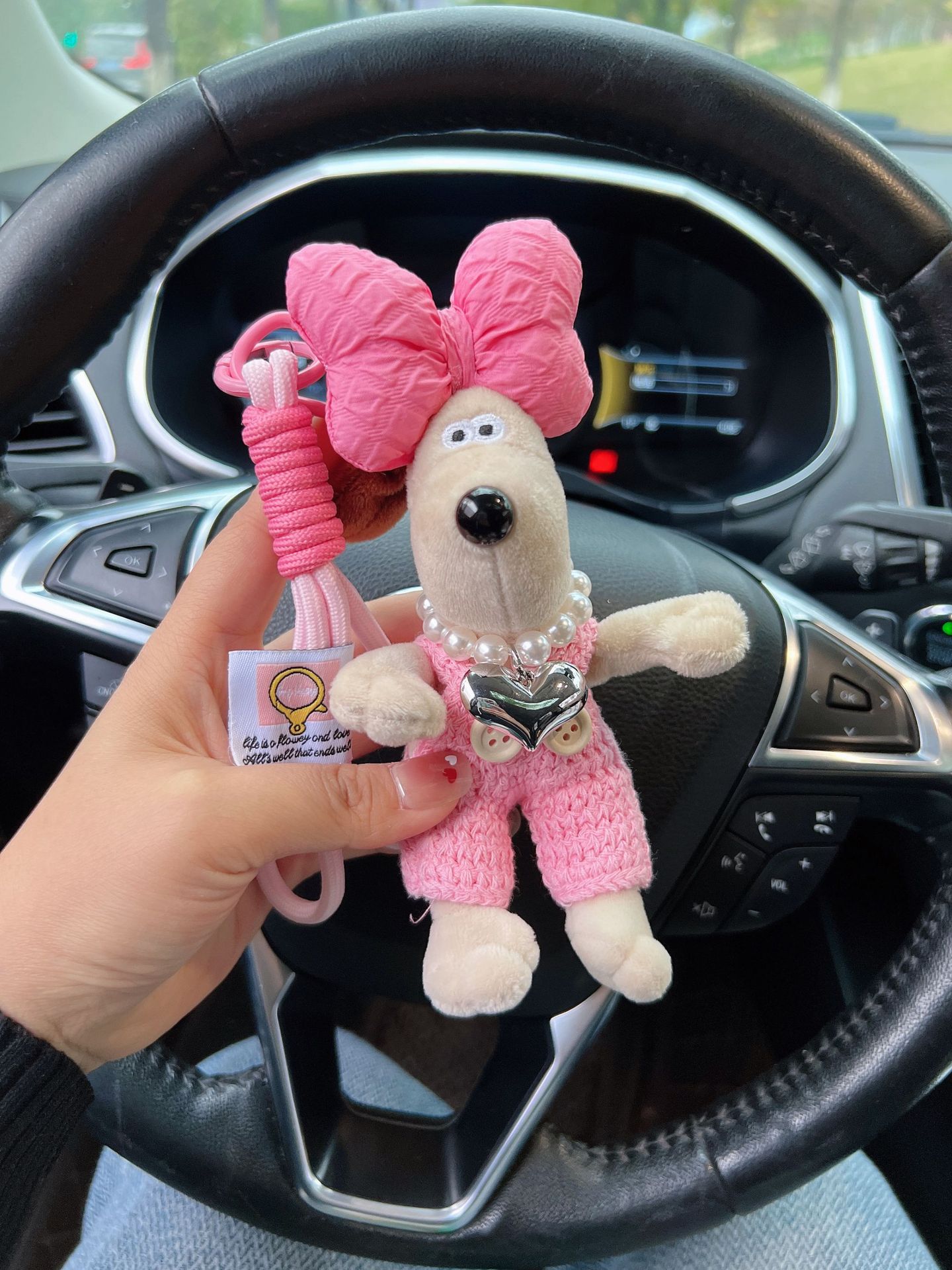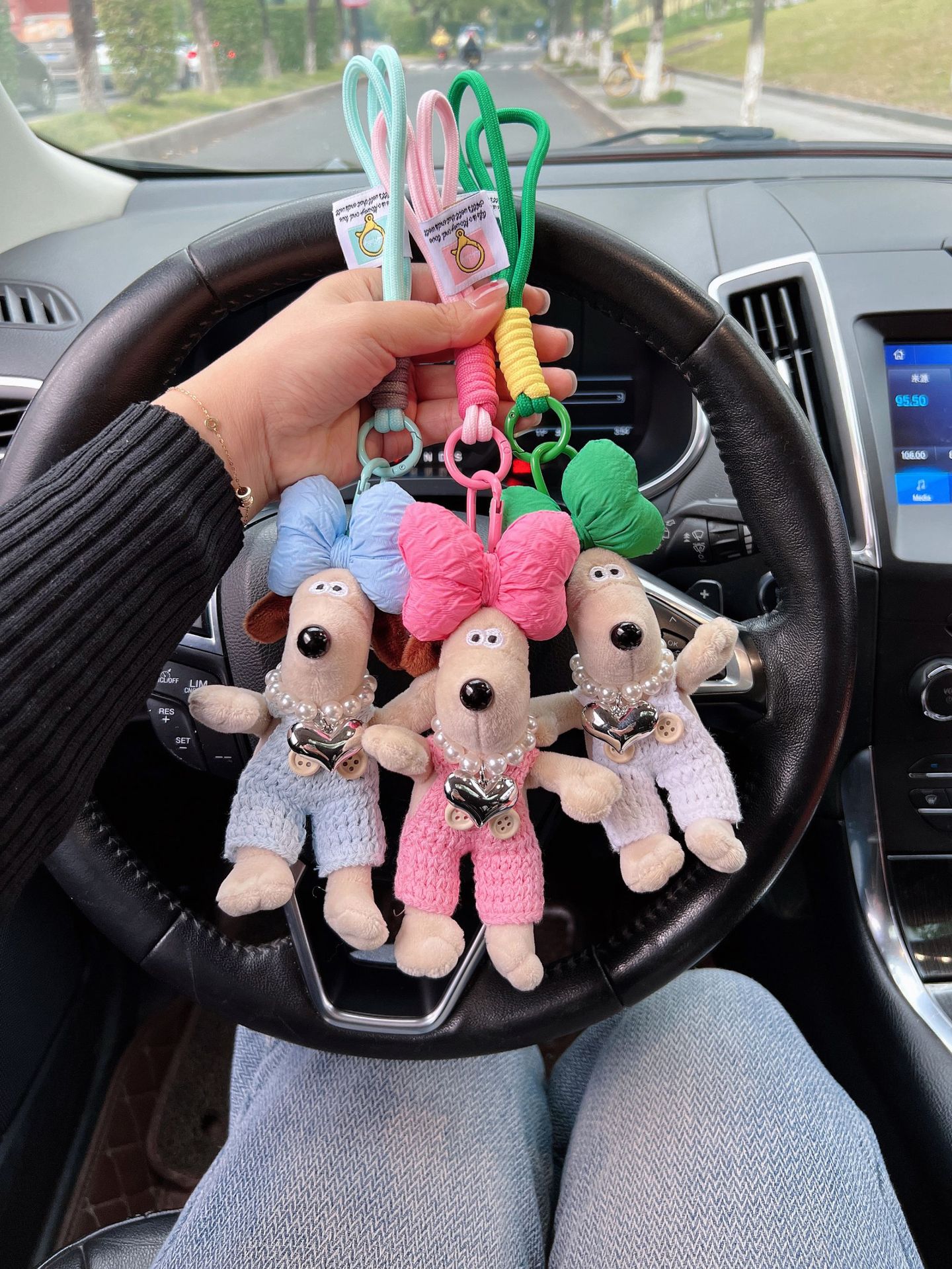 可爱棉绳毛线掌门狗钥匙扣珍珠爱心项链狗狗玩偶情侣钥匙扣背包扣 English | 投诉