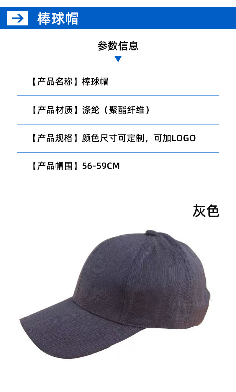 产品类别: 鸭舌帽 功能: 遮阳 面料名称: 涤纶 主面料成分: 涤纶(聚酯纤维) 处理工艺: 机绣,拓印 品牌: 鑫泰 风格: 无 货号: 棒球帽 适合季节: 夏季,冬季,春季,秋季 产地: 河北 帽顶款式: 圆顶 帽檐款式: 加长檐 颜色: 灰色 是否跨境出口专供货源: 否 主要下游平台: 淘宝,京东,亚马逊,快手,速卖通,天猫 上市年份/季节: 2021年夏季 主面料成分含量: 96%以上 风格分类: 无明显风格 流行元素分类: 无 重量: 0.2 kg/顶