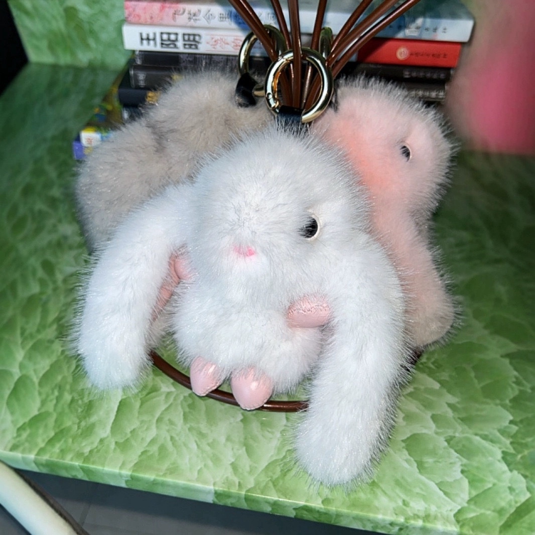 可爱仿兔毛汽车钥匙扣挂件ins网红毛绒公仔玩偶包包挂饰礼物仿水 English | 投诉