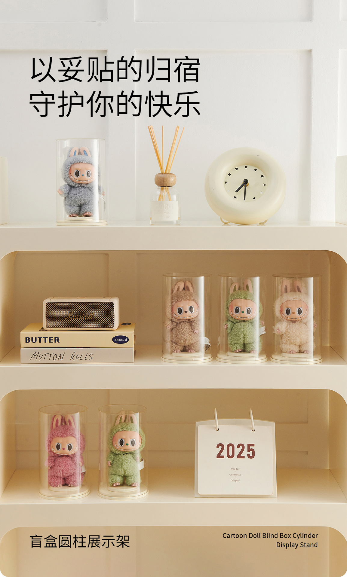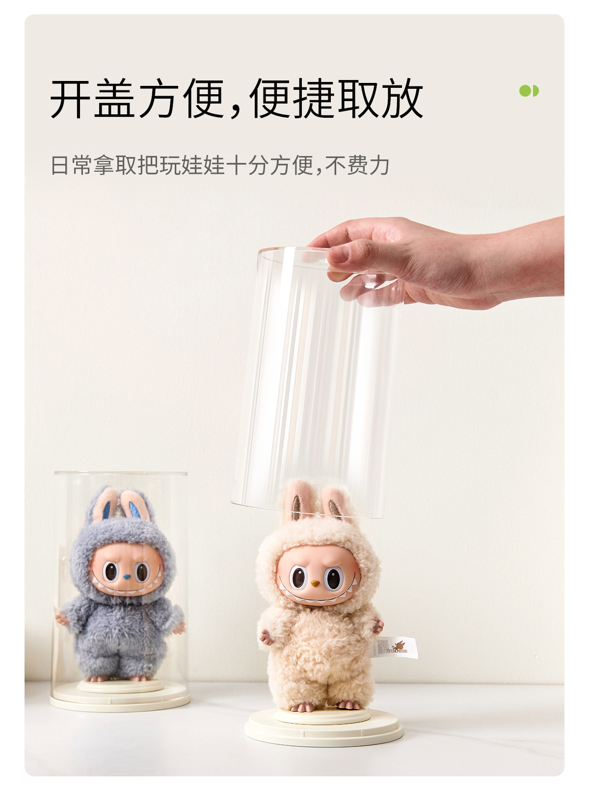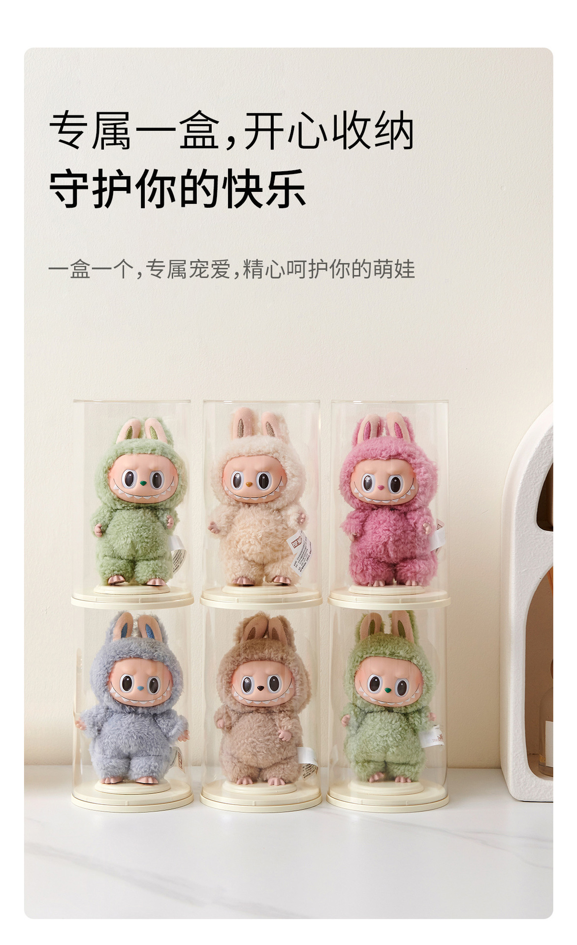 FaSoLa桌面摆件展示盒透明毛绒公仔挂件收纳手办盲盒圆柱展示架 English | 投诉