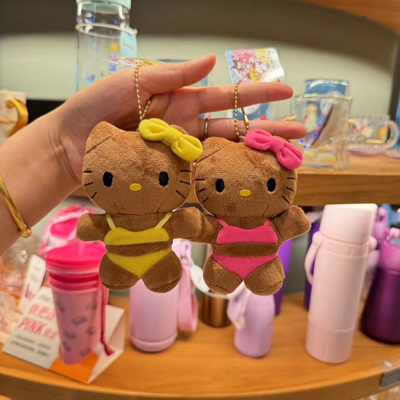 卡通热卖黑皮泳装姐妹花KT钥匙扣挂件猫咪公仔女生背包装饰小玩偶 English | 投诉