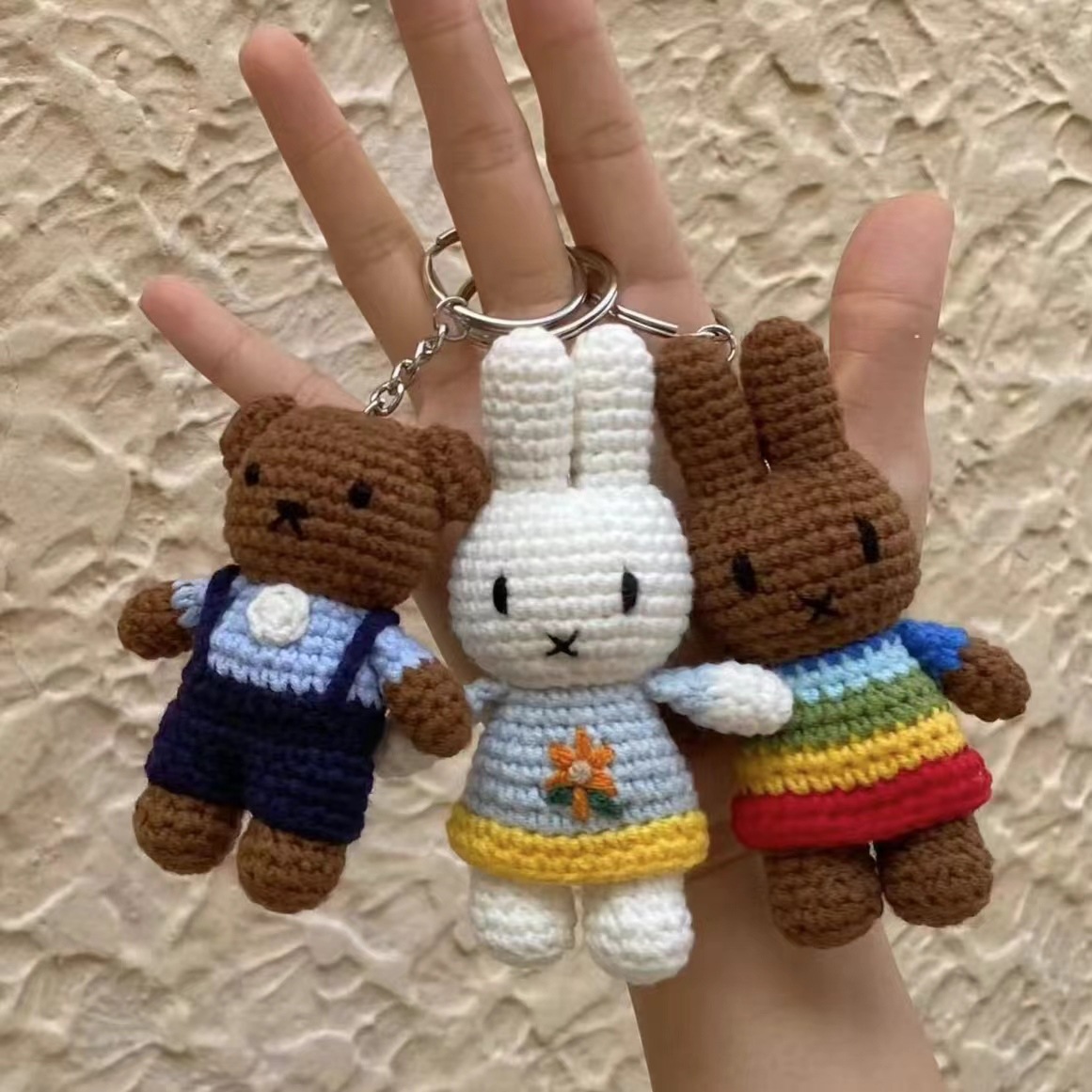 手工编织成品米菲兔彩虹梅拉尼兔鲍里斯熊钥匙扣挂件小熊小兔玩偶 English | 投诉