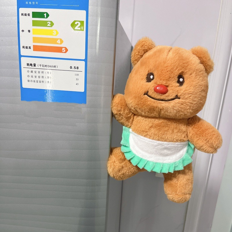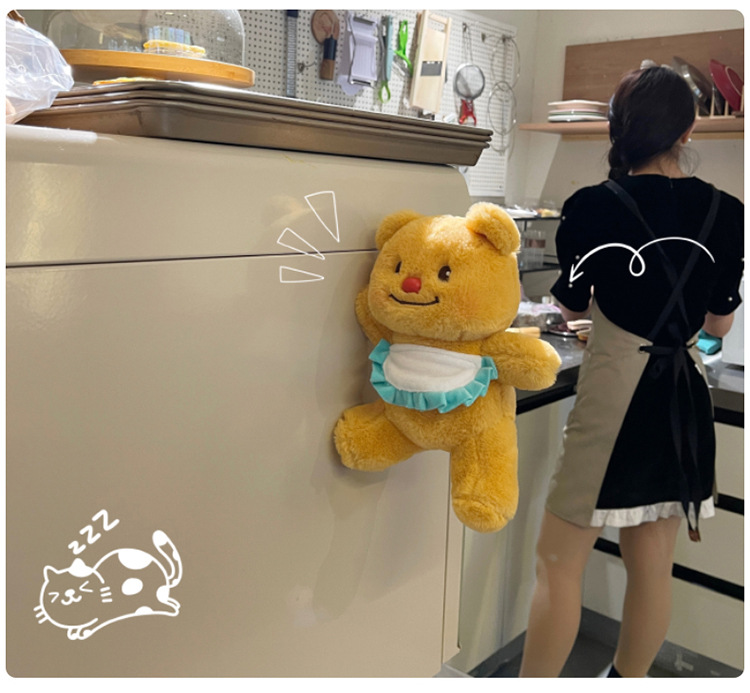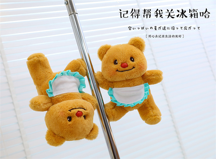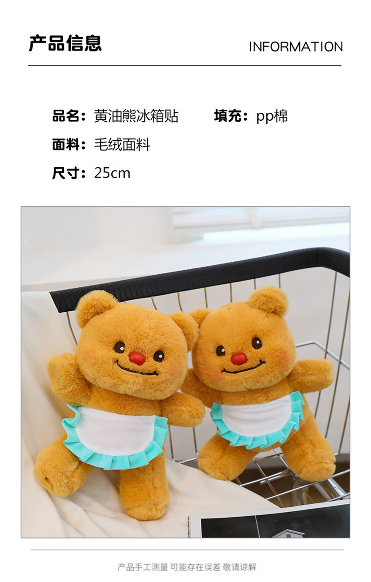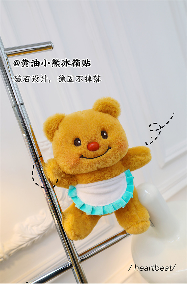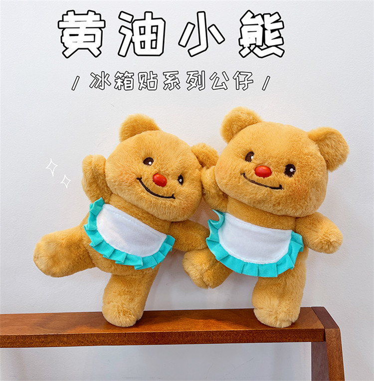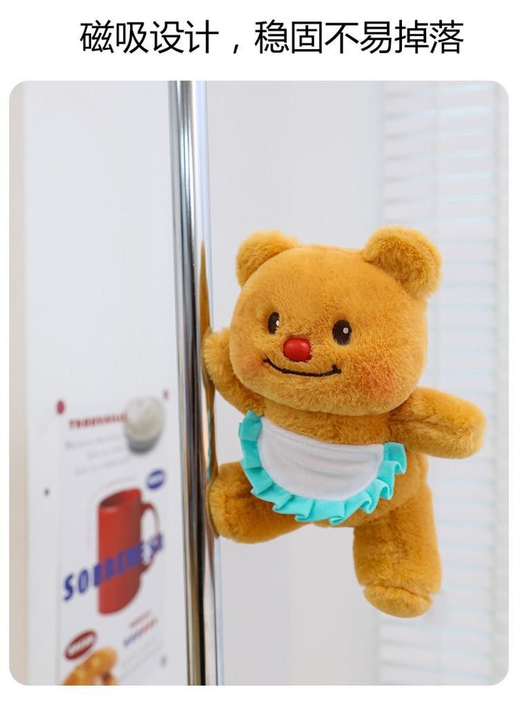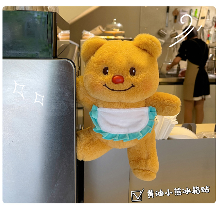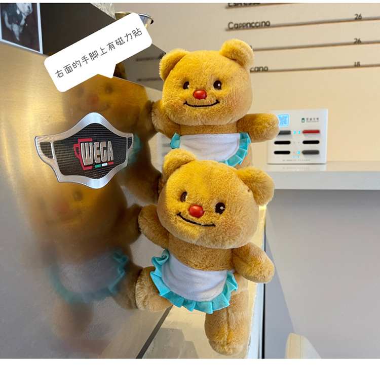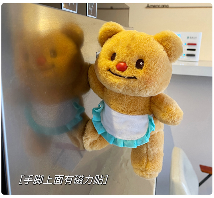 网红黄色小熊冰箱贴挂件可爱围裙熊毛绒公仔玩具个性创意磁吸玩偶 English | 投诉