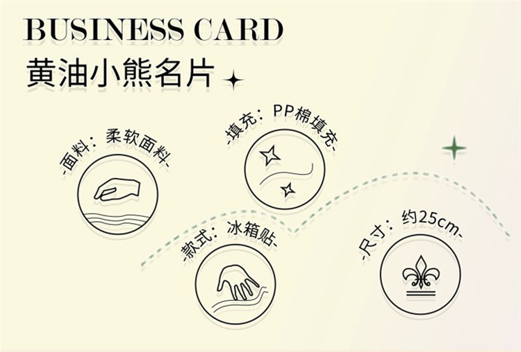 填充材质: PP棉 品牌: 其他 适用年龄: 青年(15-35岁) 造型类别: 动物 毛绒分类: 毛绒面料 动物分类: 熊 是否专供外贸: 否 所属分类: 毛绒公仔 造型是否卡通、动漫: 否 包装方式: 其他 是否多功能: 否 货号: 黄油熊冰箱贴 加工定制: 是 加工方式: 来图定制 专利及著作权申请时间: 其他 是否有导购视频: 是 产地: 中国 是否外贸: 是 3C配置类别: 14岁以上的玩具 颜色: 黄油小熊 重量: 0.473 kg/个