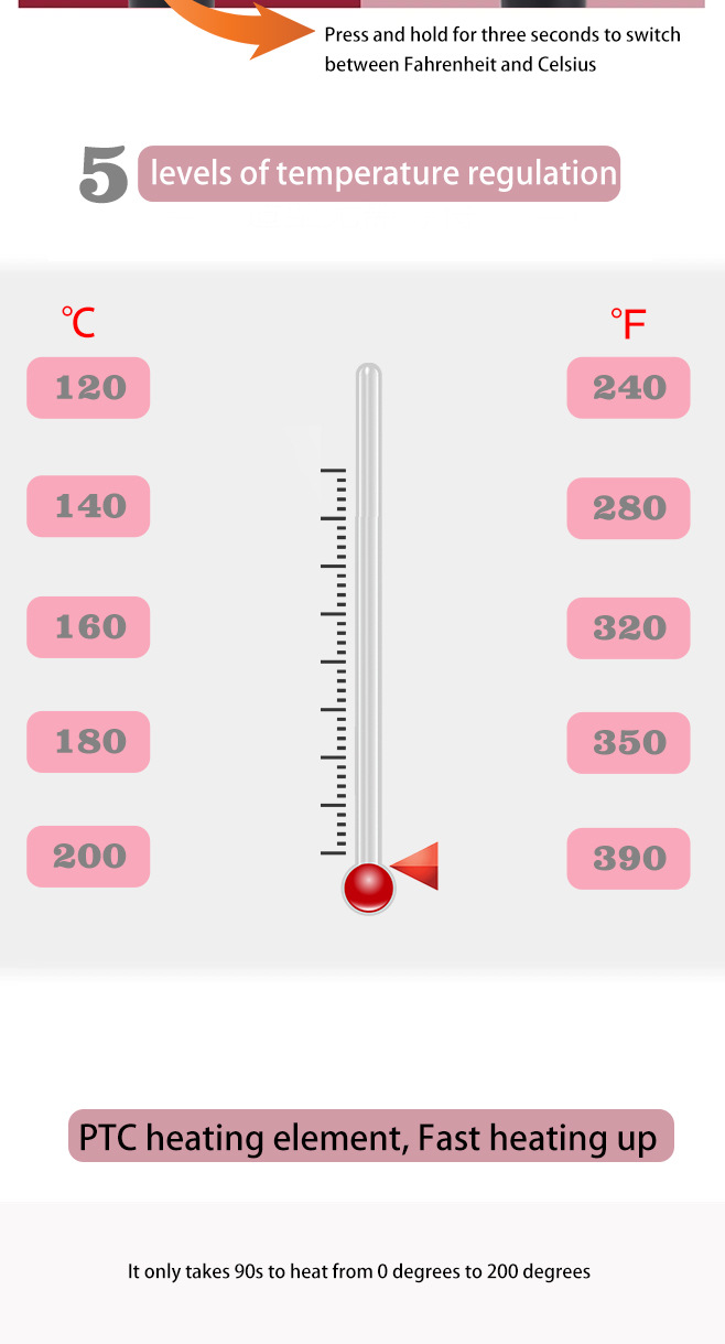 产品简约设计 五段温度调节:120/140/160/180/200