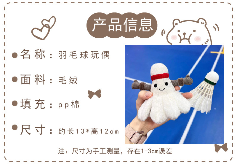 卡通羽毛球毛绒玩偶玩具公仔高颜值可爱包包挂饰钥匙扣挂件小礼物 English | 投诉
