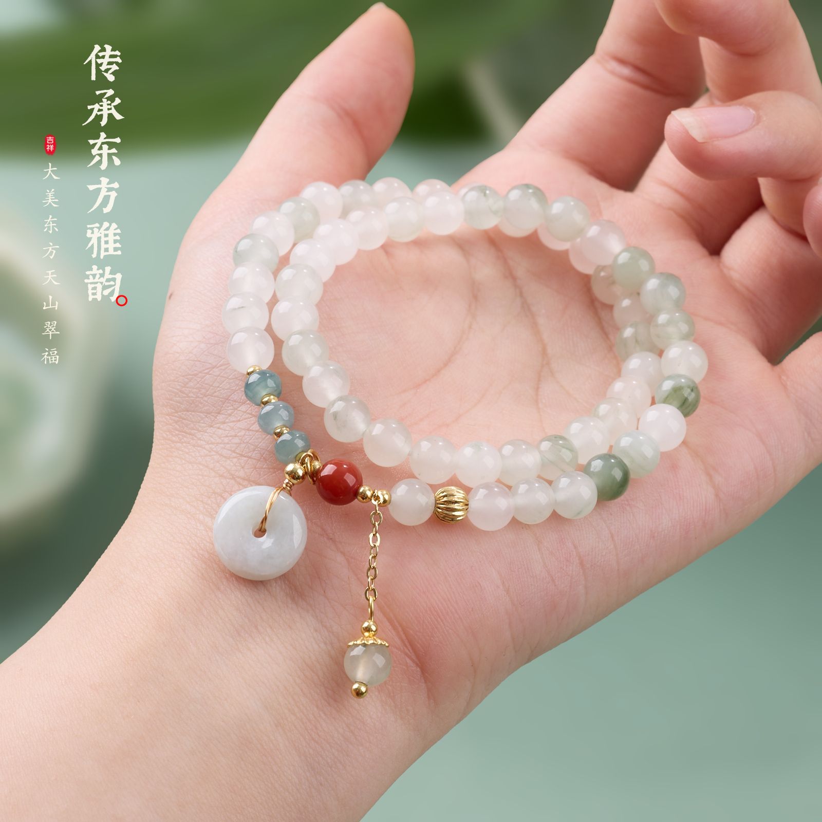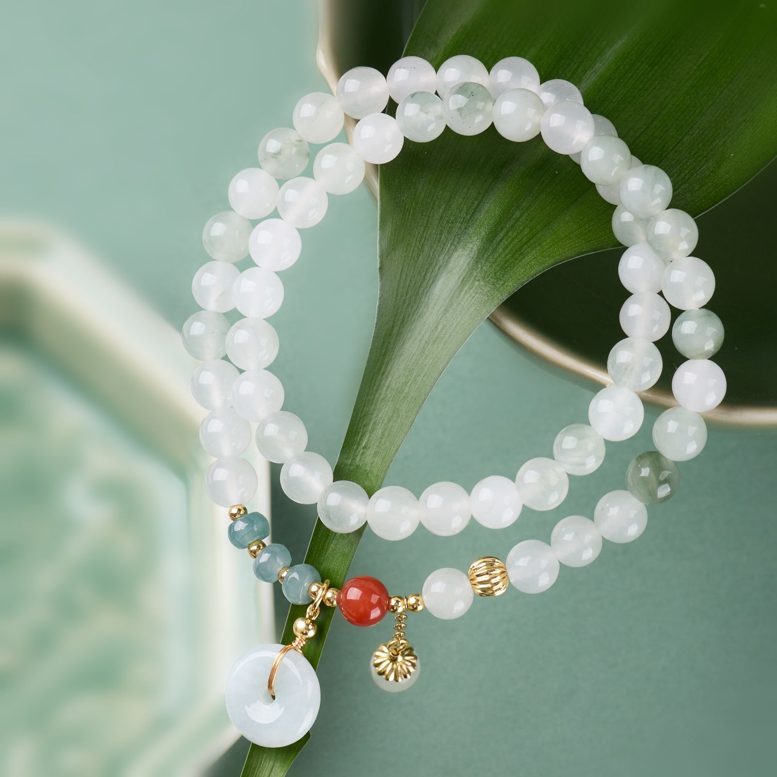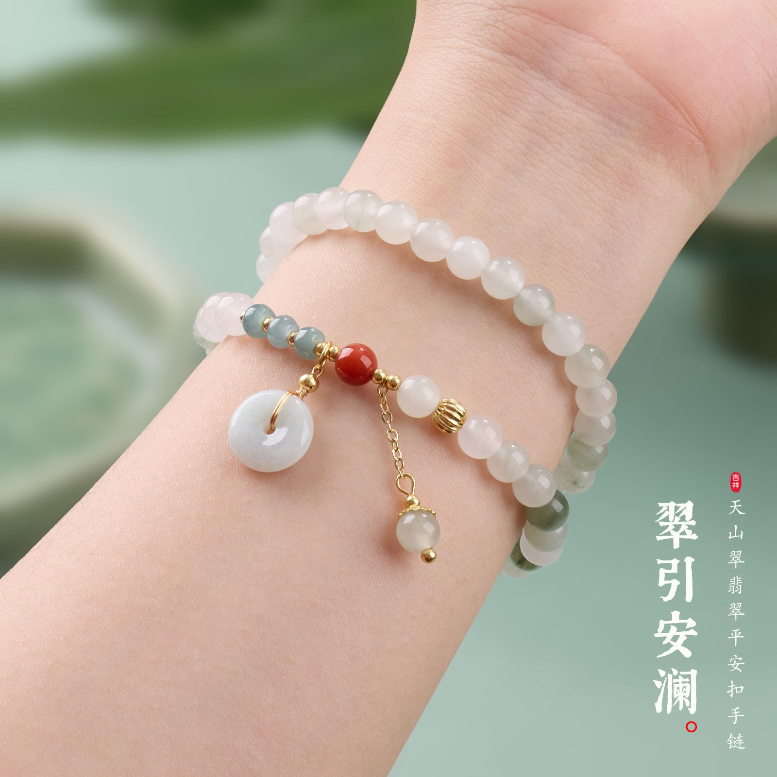 |主材|天山翠,蓝水翡翠,红玛瑙仿南红,翡翠平安扣,铜镀金配件