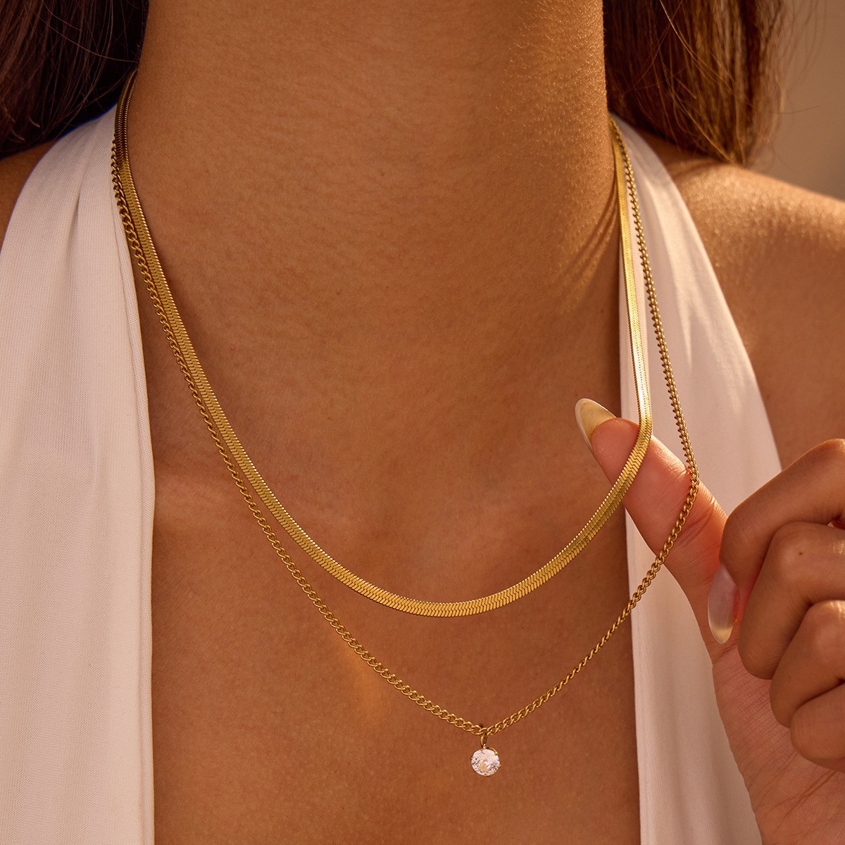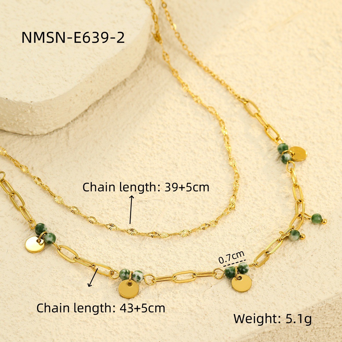 材质: 不锈钢 处理工艺: 电镀 链子样式: 常规链 坠子材质: 不锈钢 品牌: nimai 流行元素: 链条 造型: 几何型 货号: NMSN-E749-2 NMSN-E63 产地: 义乌 是否多层: 否 周长: 41cm(含)-50cm(含) 主要下游平台: 淘宝,京东,ebay,PDD,亚马逊,w 颜色: NMSN-G435-1,NMSN-K51 纯度: 18K 有可授权的自有品牌: 是 是否跨境出口专供货源: 是 上市年份/季节: 2025年冬季 风格: 时尚OL 风格分类: 时尚通勤 主要销售地区: 非洲,欧洲,南美,东南亚,北美,东北亚,