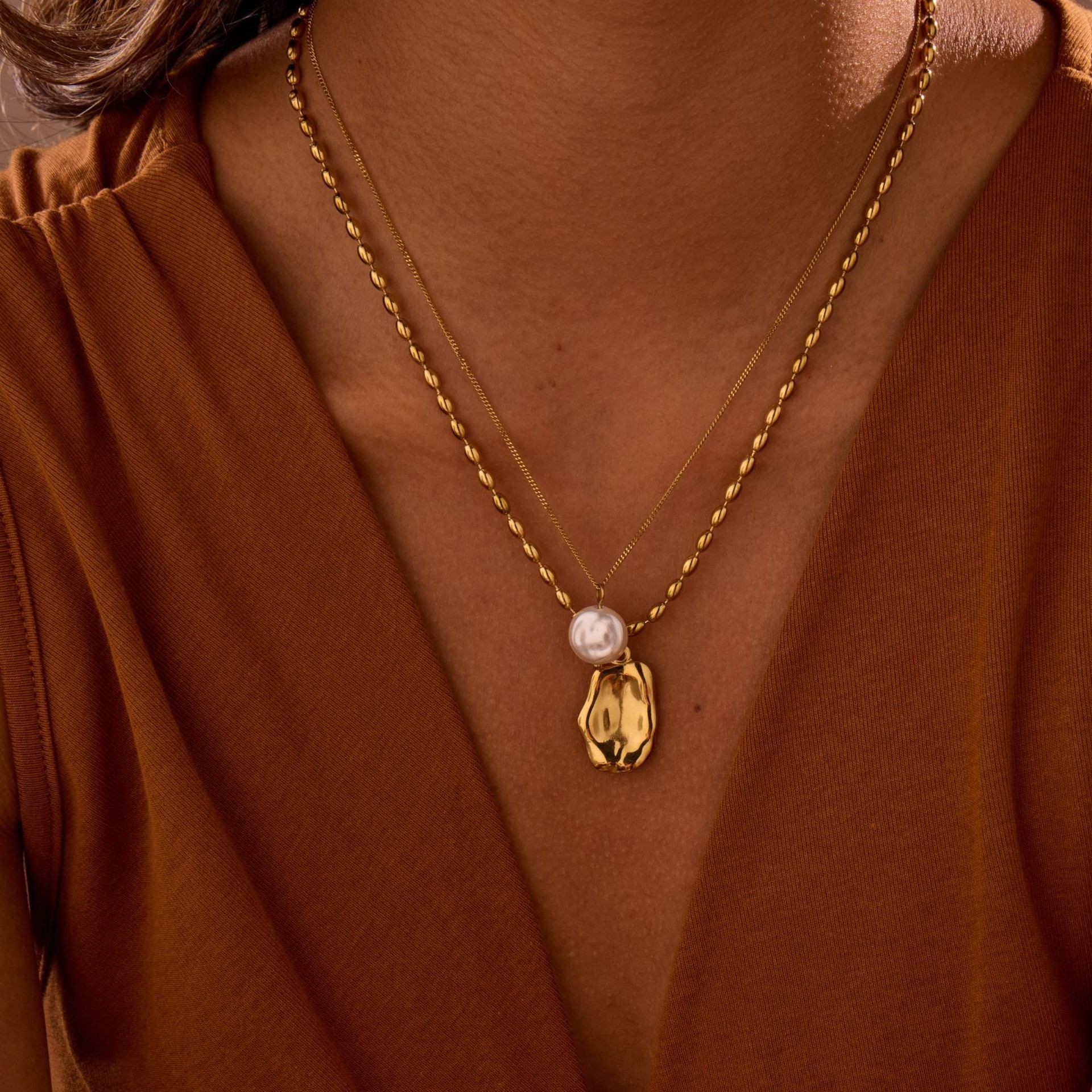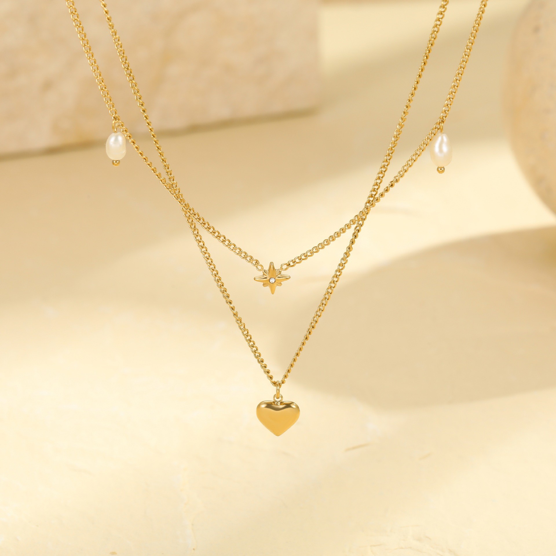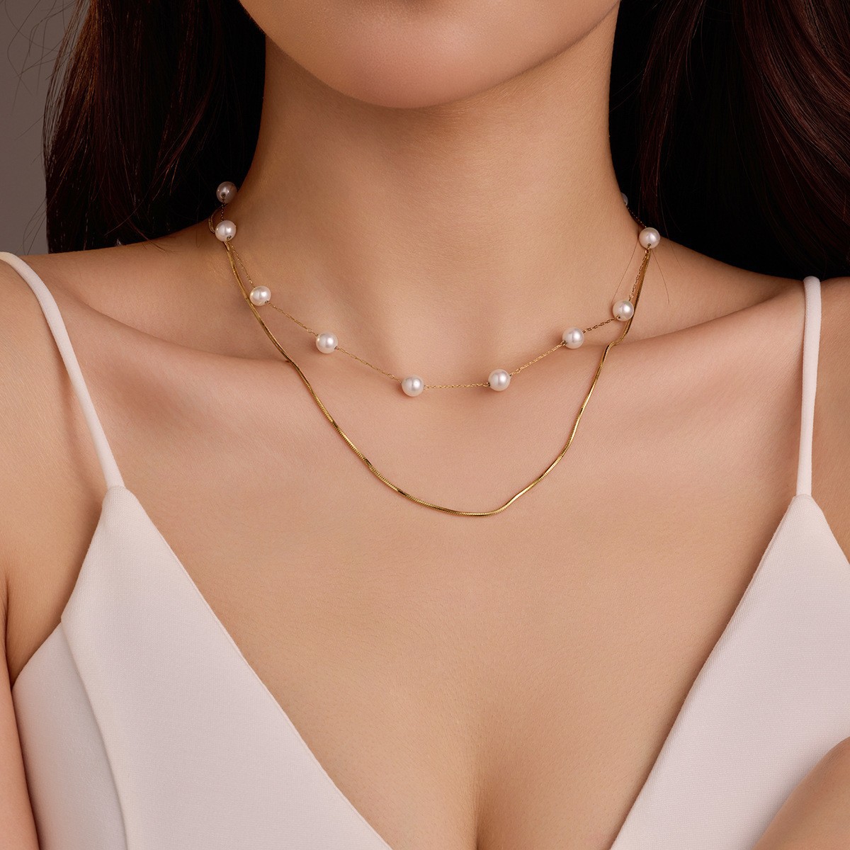 跨境欧美新款轻奢法式珍珠项链女小众双层高级感不锈钢颈链锁骨链 English | 投诉