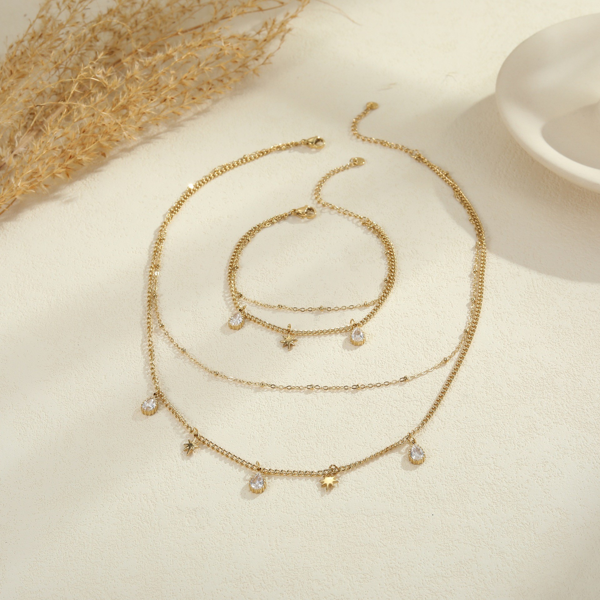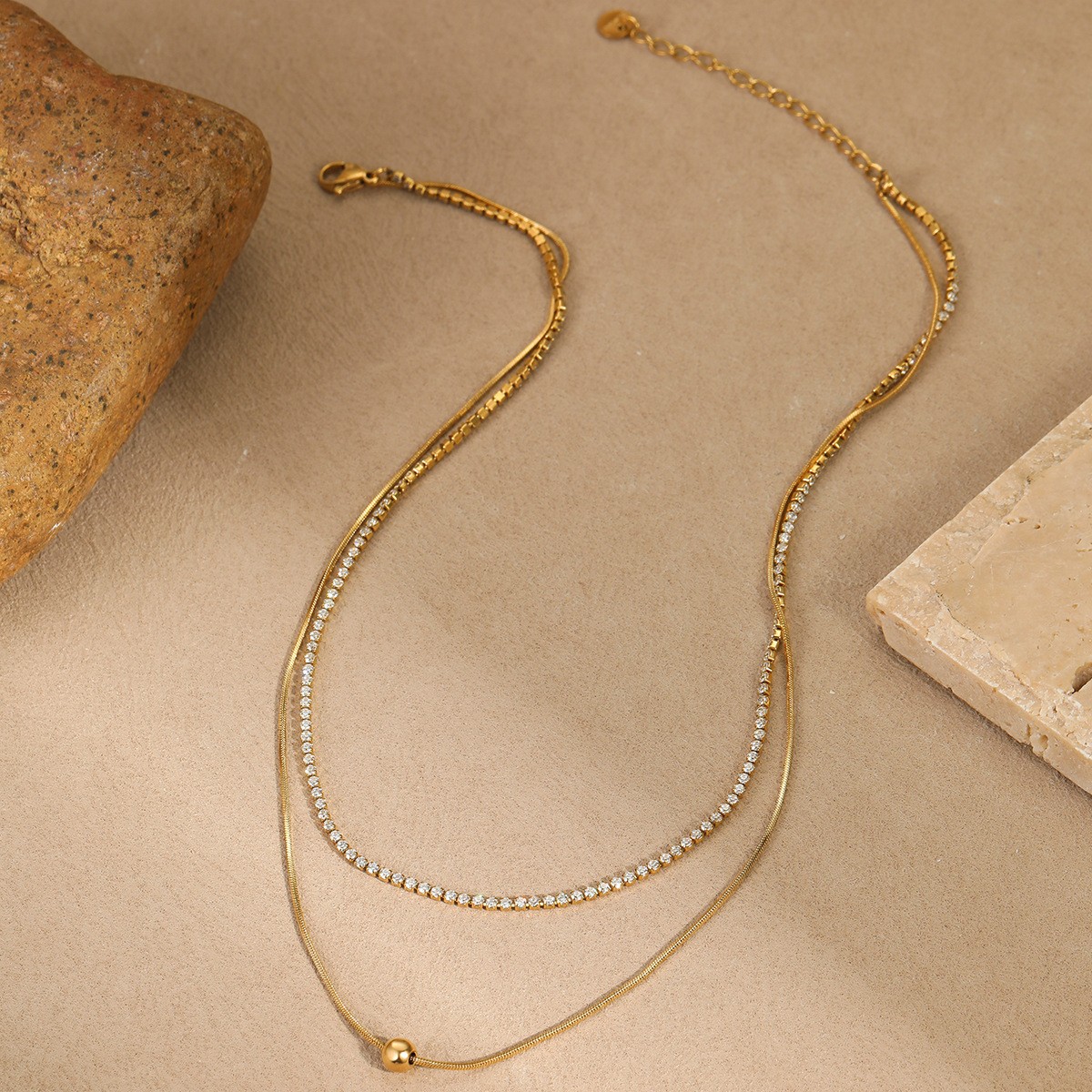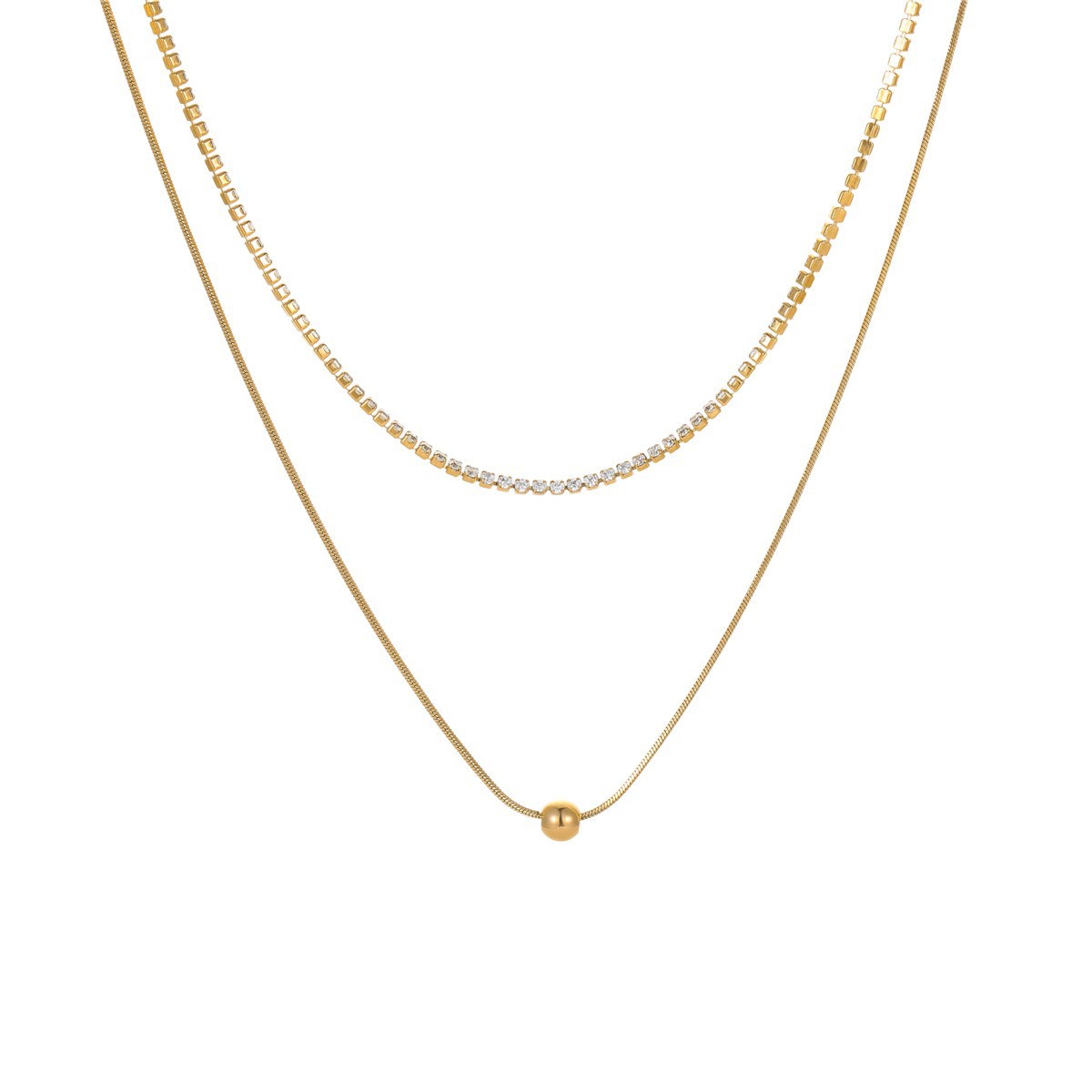跨境欧美新款轻奢法式珍珠项链女小众双层高级感不锈钢颈链锁骨链 English | 投诉