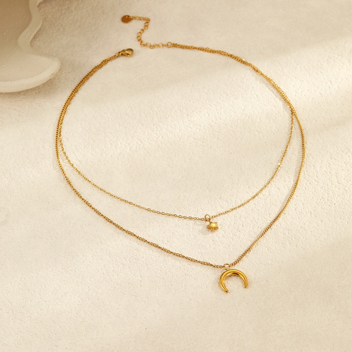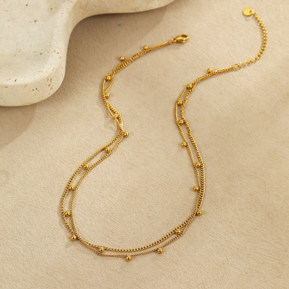 跨境欧美新款轻奢法式珍珠项链女小众双层高级感不锈钢颈链锁骨链