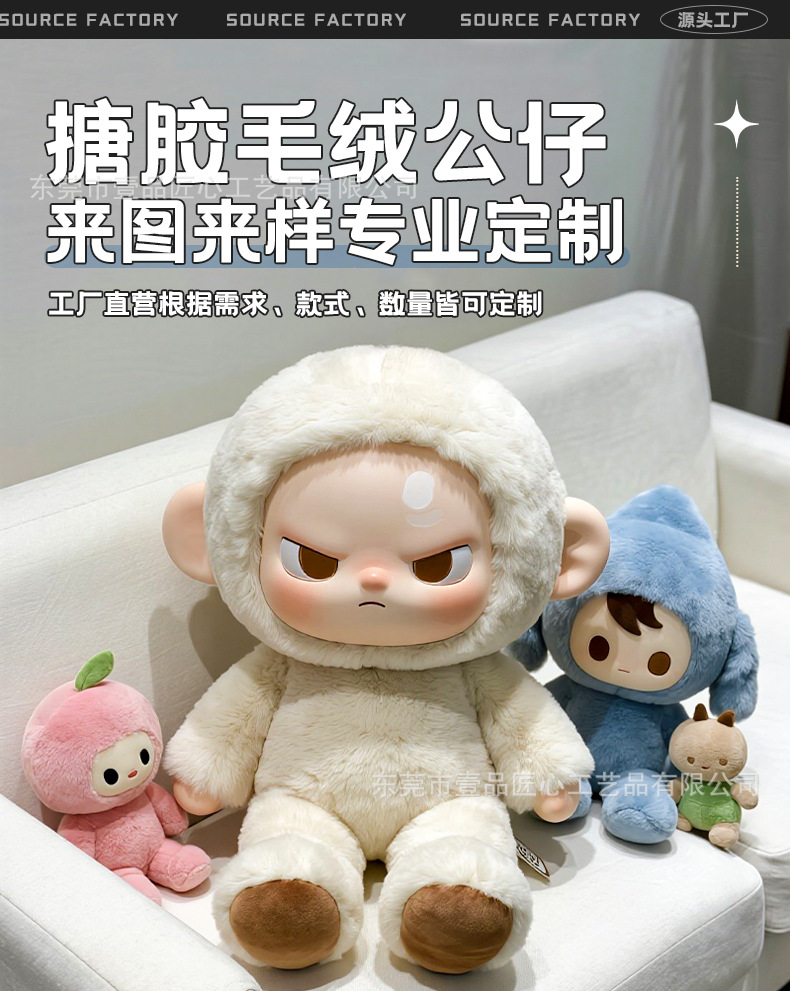 搪胶毛绒娃娃定制 硅胶毛绒玩具定做 ip潮玩盲盒玩偶手办定制