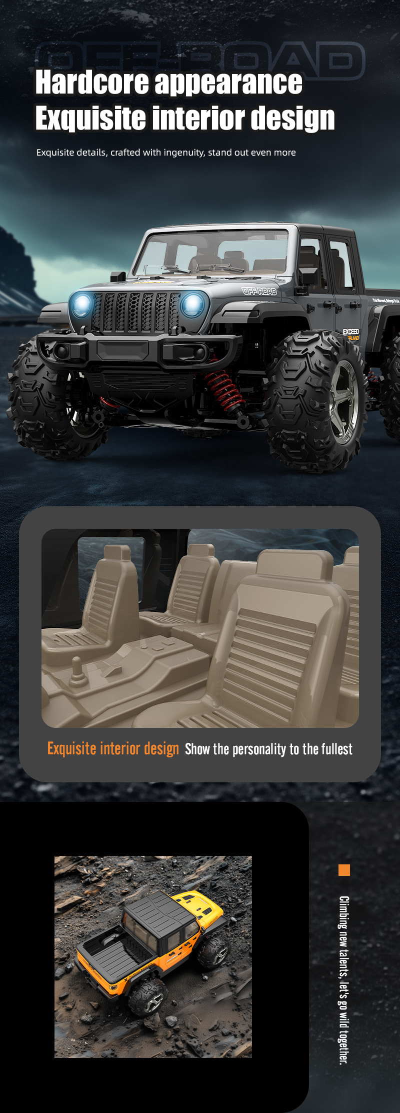 5.匠心设计的炫酷皮卡车外观,全独立车座,独立车身,独立组件,独立内饰件,精美外观,匠心制造。