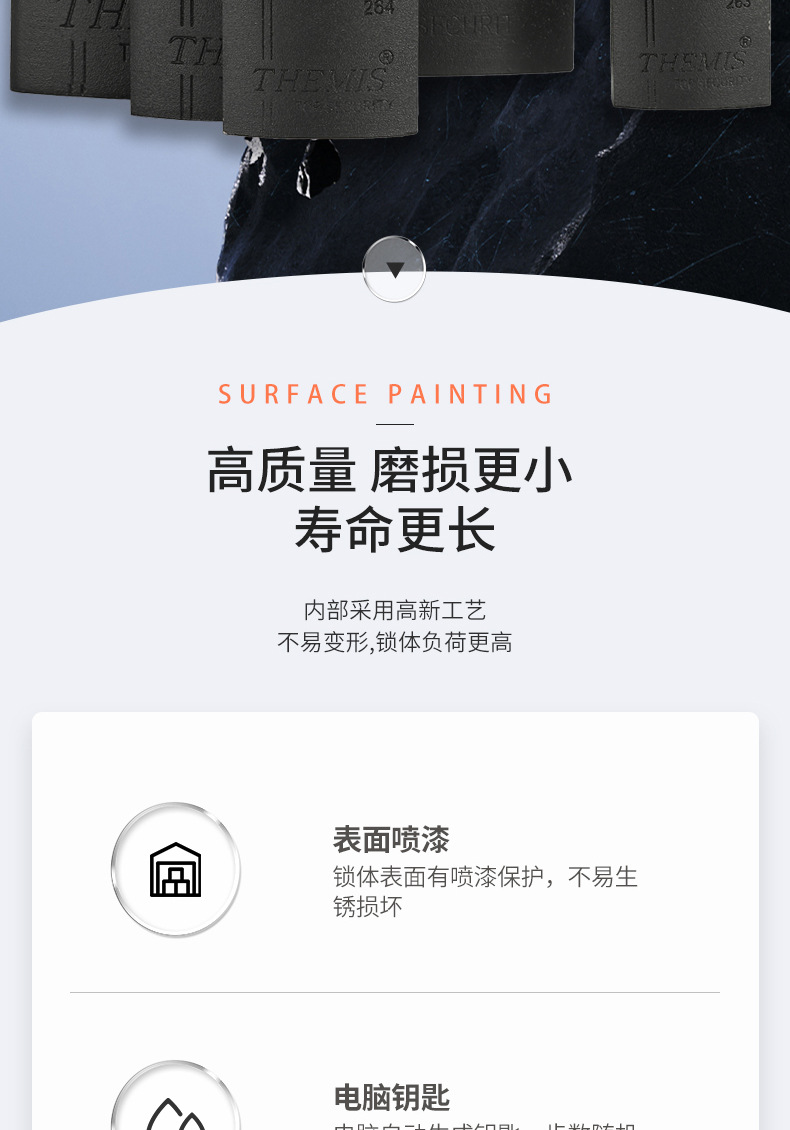 浦江鼎顺锁厂创立于2000年于2015年正式改名为浦江鼎顺锁业有限公司。公司秉承质量为主,诚信为本的经营理念。主要产品有大圆角叶片锁,方形叶片锁,矩形叶片锁,套壳叶片锁,包梁叶片锁,电脑矩形锁,一字矩形锁,套壳矩形锁,圆钢锁。千层锁,密码锁,报警锁,全铜密码锁,链条锁,圆饼锁,抗液压挂锁,同心锁,密码锁等等。公司有“CQC”和"THEMIS"等品牌。望广大新老客户前来咨询采购。