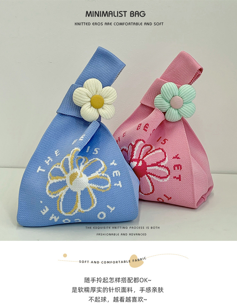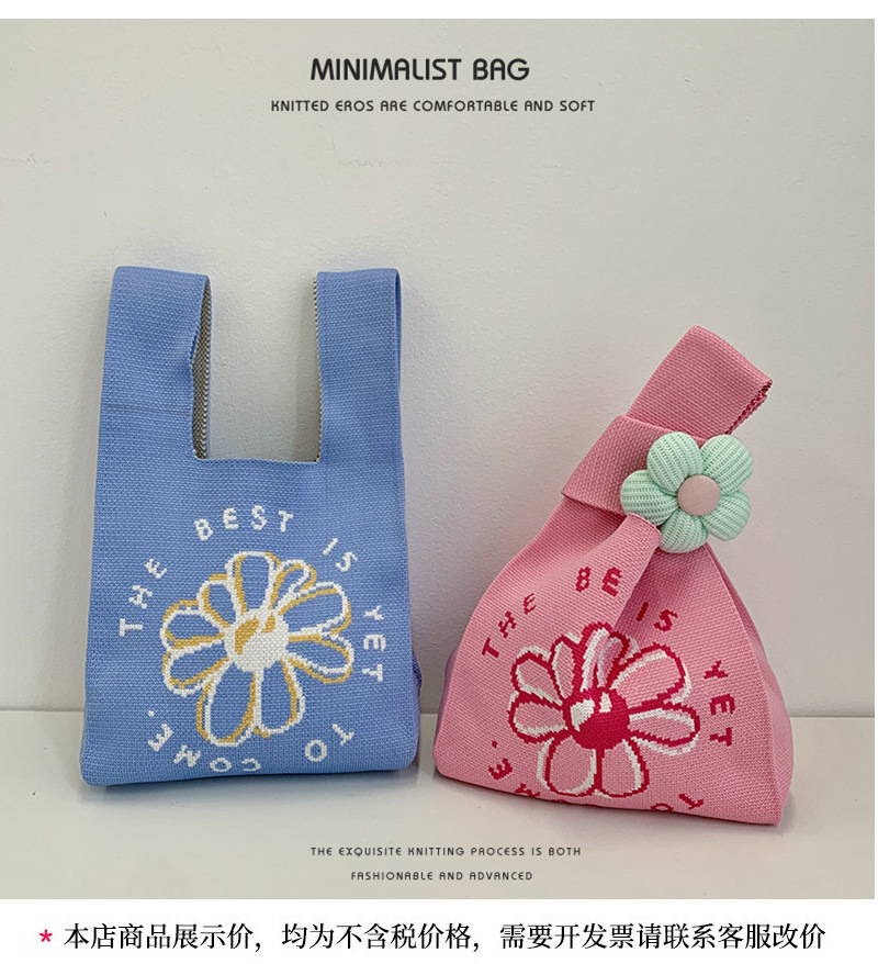 包包女新款伴手礼袋子可爱花朵38女神节针织手提袋卡通手提单肩包 投诉