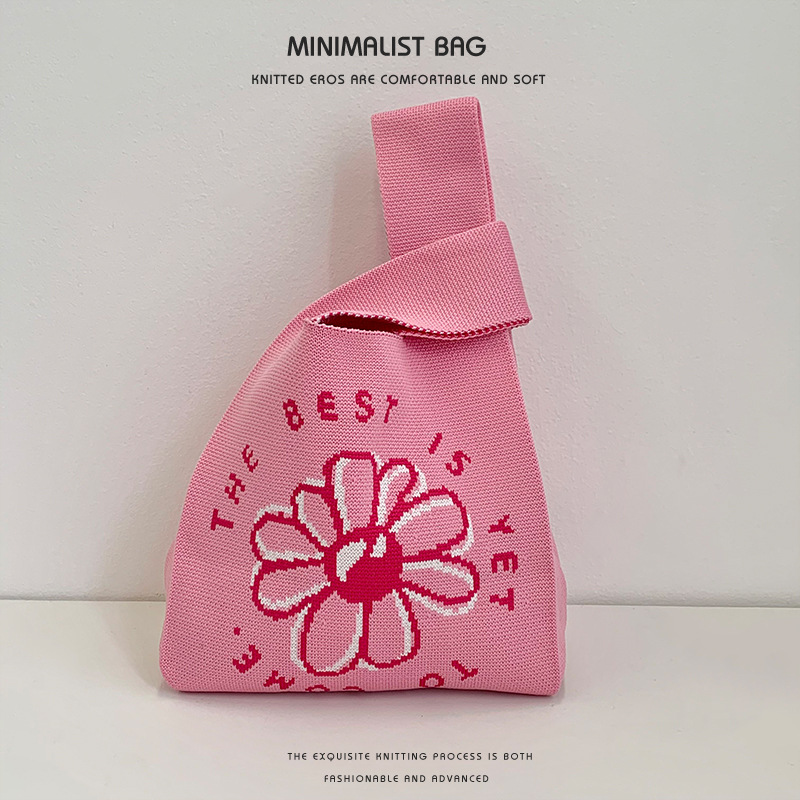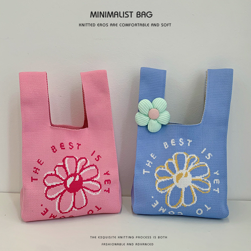 包包女新款伴手礼袋子可爱花朵38女神节针织手提袋卡通手提单肩包